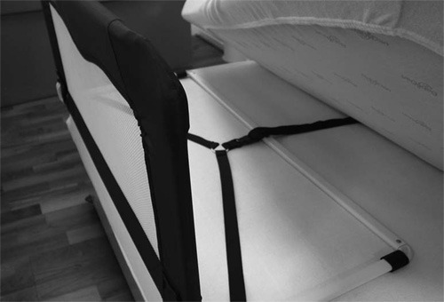 - Górna część barierki jest dodatkowo zabezpieczona miękką wyściółką, by uchronić dziecko przed urazami.
