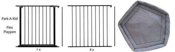 - Kojec składa się z 5 sekcji - otwieranej furtki o szerokości 72 cm oraz 4 paneli 72 cm.