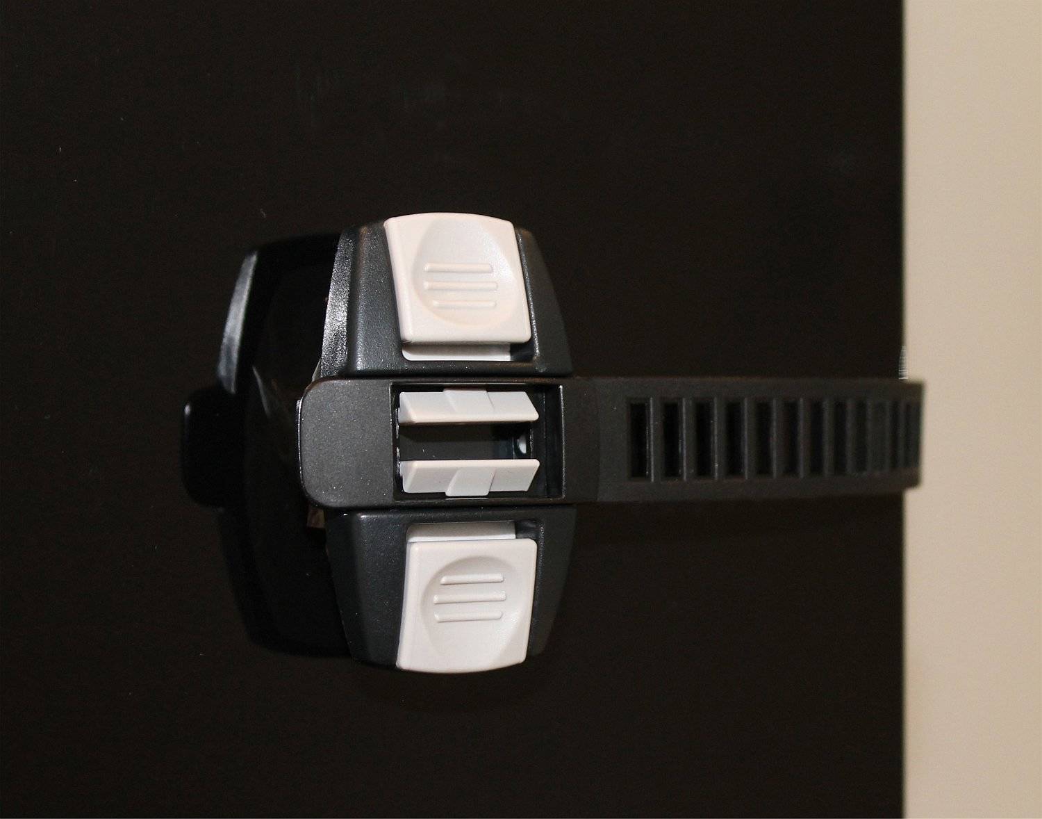 - Blokada ma formę paska o regulowanej długości (maks. 20 cm) wraz z zatrzaskiem.