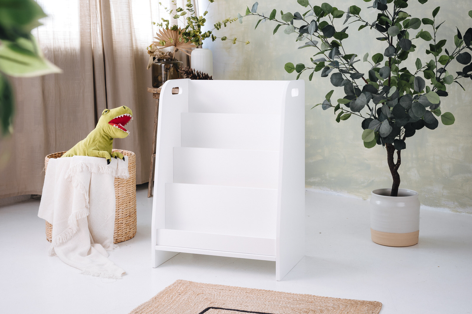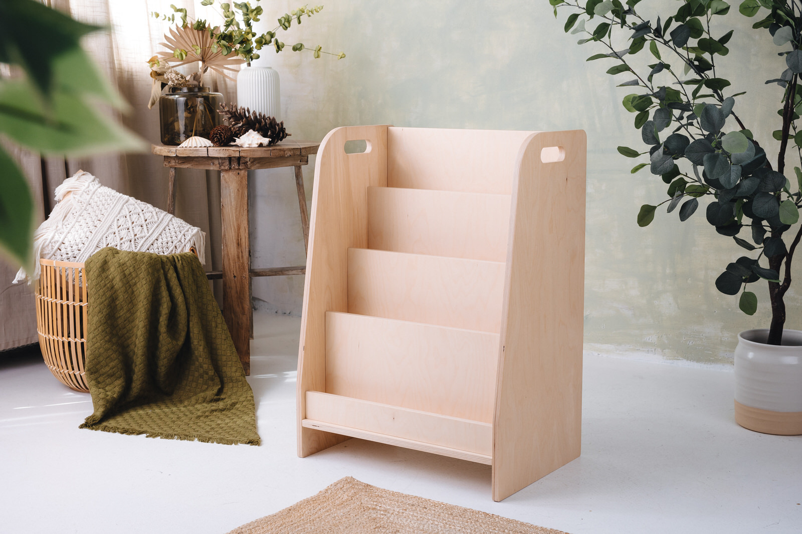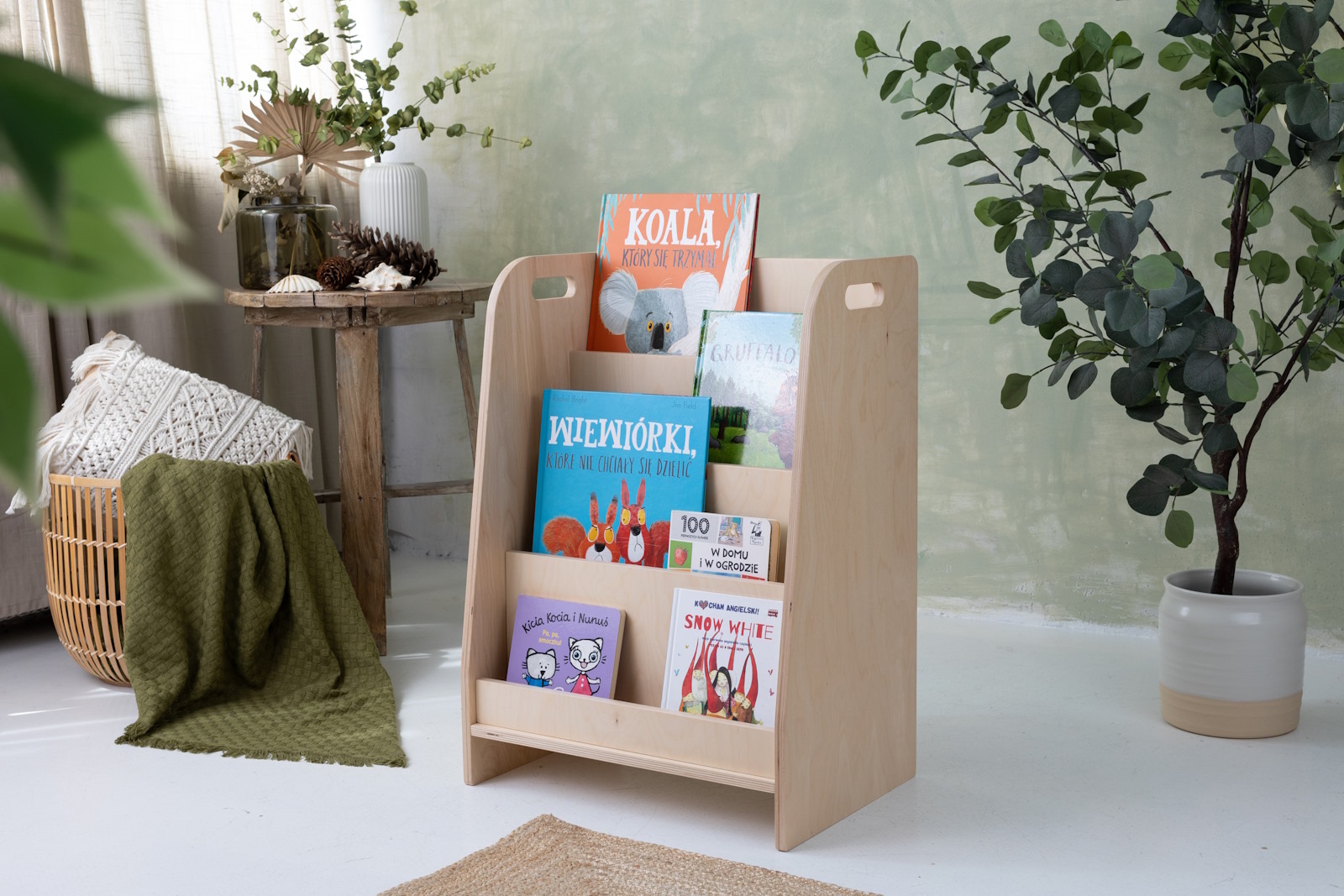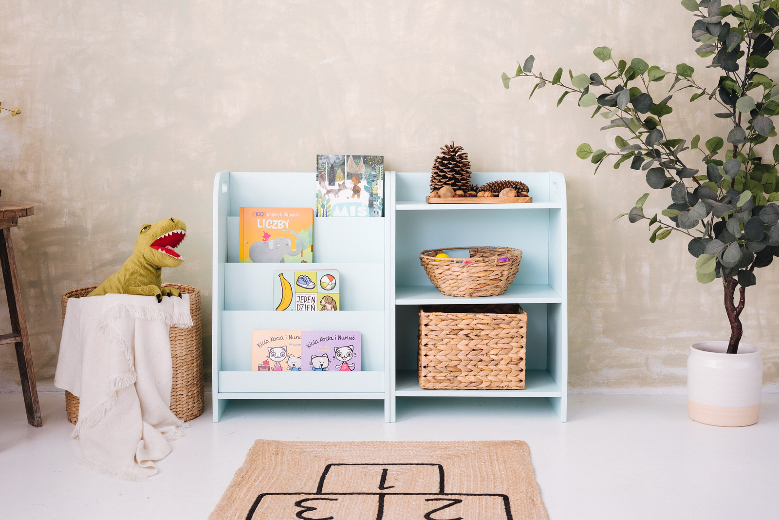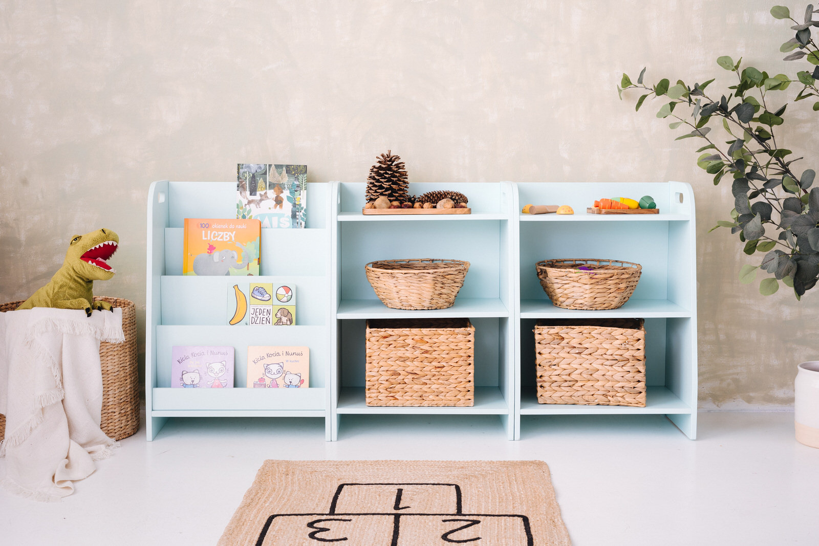 Biblioteczka dla dzieci w formie otwartego i przejrzystego w swojej konstrukcji regału na książki jest idealną propozycją dla miłośników harmonii oraz prostoty wnętrz. Zgodnie z zasadami metody Montessori, mebel ten ma za zadanie wsparcie dziecka w jego rozwoju. Już sam sposób układania książek okładką do przodu umożliwia małemu człowiekowi dokonanie przemyślanego wyboru lektury, a pełna dostępność do półek-kieszeni z poziomu podłogi ułatwia nie tylko dotarcie do upatrzonej pozycji, ale również zachęca do umieszczenia jej później z powrotem na swoim miejscu. Takie rozwiązanie uczy samodyscypliny i dbałości o własną przestrzeń.