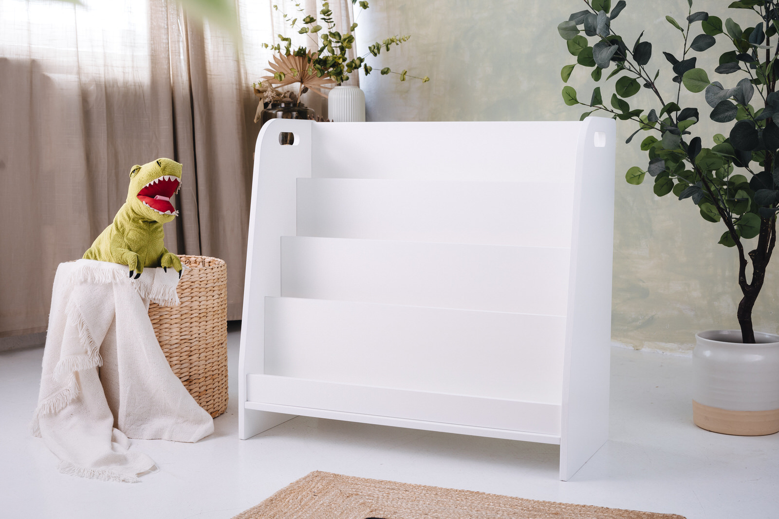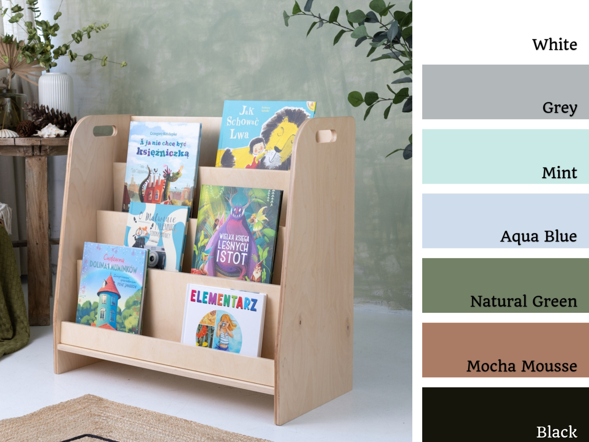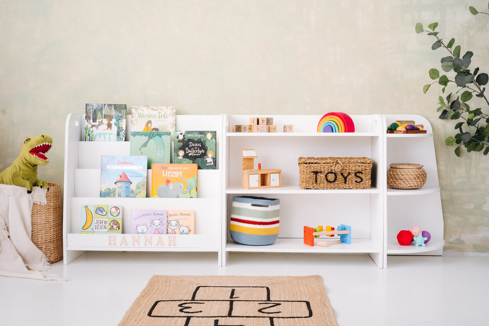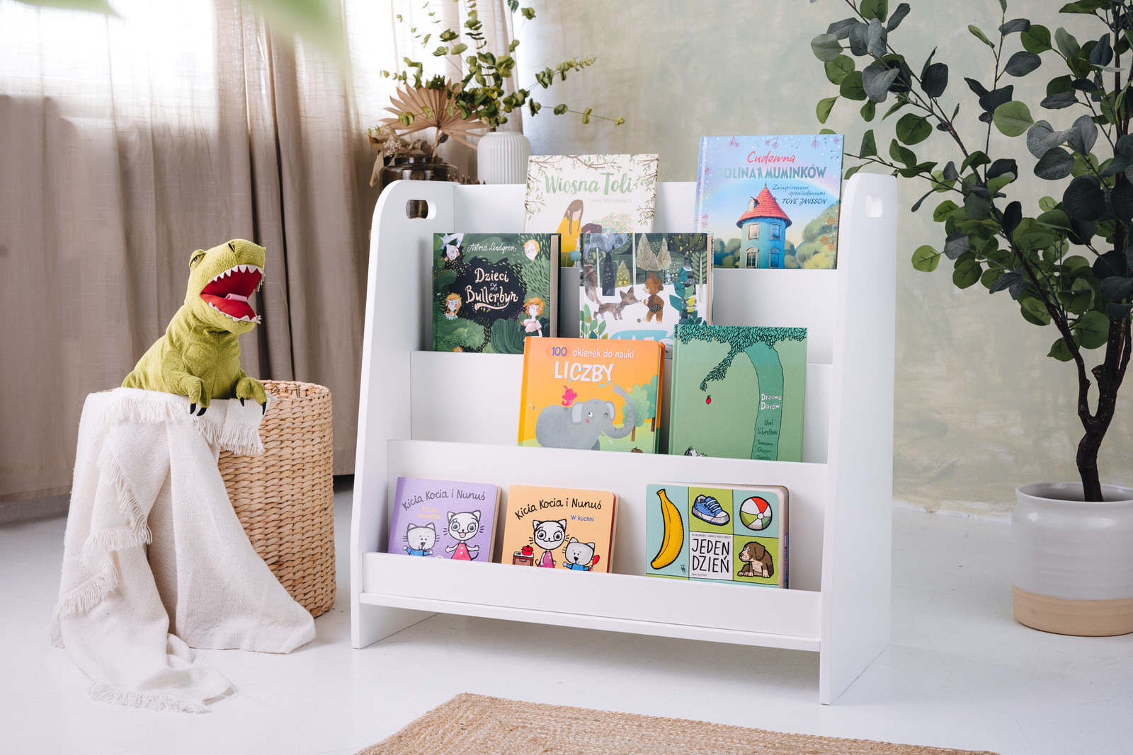 Biblioteczka dla dzieci w formie otwartego i przejrzystego w swojej konstrukcji regału na książki jest idealną propozycją dla miłośników harmonii oraz prostoty wnętrz. Zgodnie z zasadami metody Montessori, mebel ten ma za zadanie wsparcie dziecka w jego rozwoju. Już sam sposób układania książek okładką do przodu umożliwia małemu człowiekowi dokonanie przemyślanego wyboru lektury, a pełna dostępność do półek-kieszeni z poziomu podłogi ułatwia nie tylko dotarcie do upatrzonej pozycji, ale również zachęca do umieszczenia jej później z powrotem na swoim miejscu. Takie rozwiązanie uczy samodyscypliny i dbałości o własną przestrzeń.