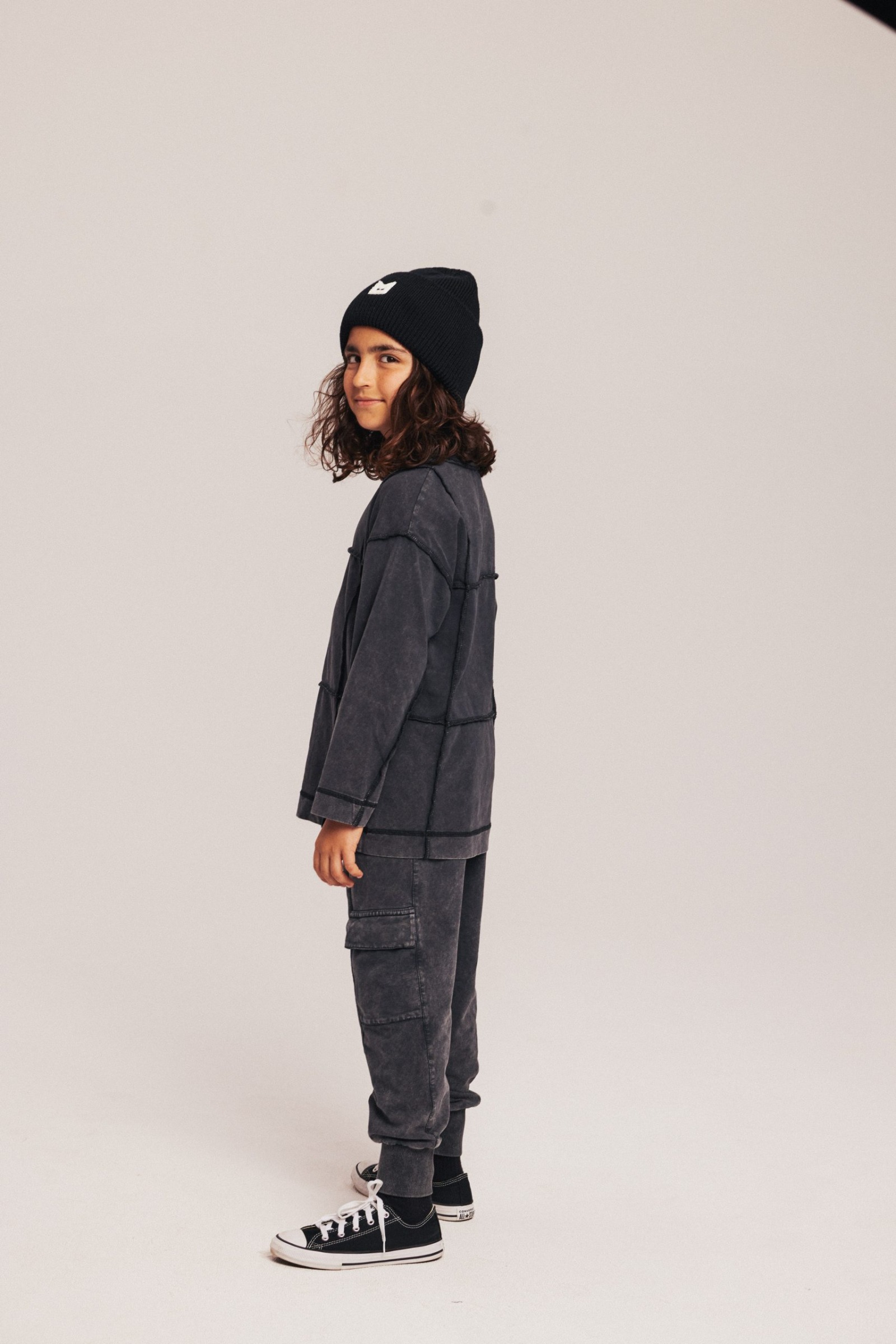 Czarny longsleeve sprawdzi się w garderobie każdego MINIKIDa. Ale! Nie może być zbyt nudno – dlatego serwujemy go z oryginalnymi przeszyciami i surowymi szwami. świetnia opcja, żeby każda stylówka była oryginalna i niebanalna. Dzięki opraniu każda sztuka jest jedyna w swoim rodzaju i wyjątkowa, a materiał miękki i miły w dotyku.