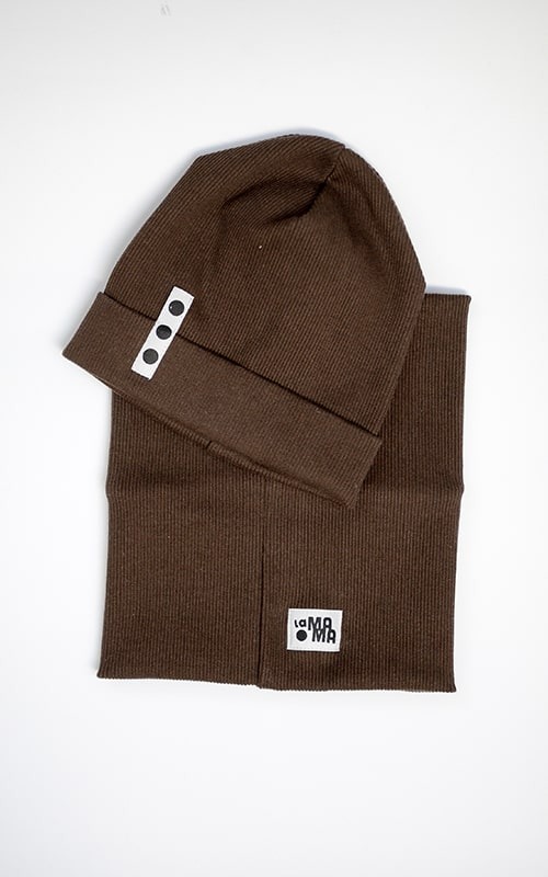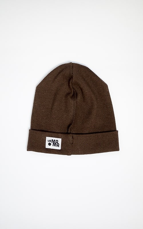 Czapka typu beanie wykonana z elastycznego prążkowanego materiału.
