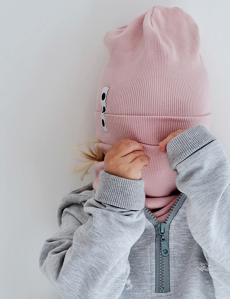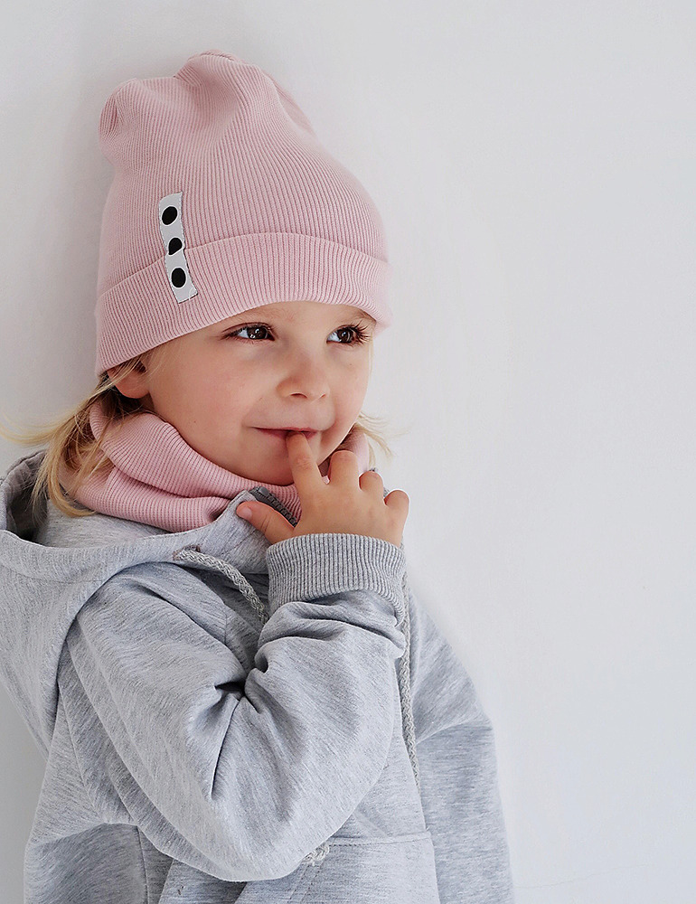 Czapka typu beanie wykonana z elastycznego prążkowanego materiału.