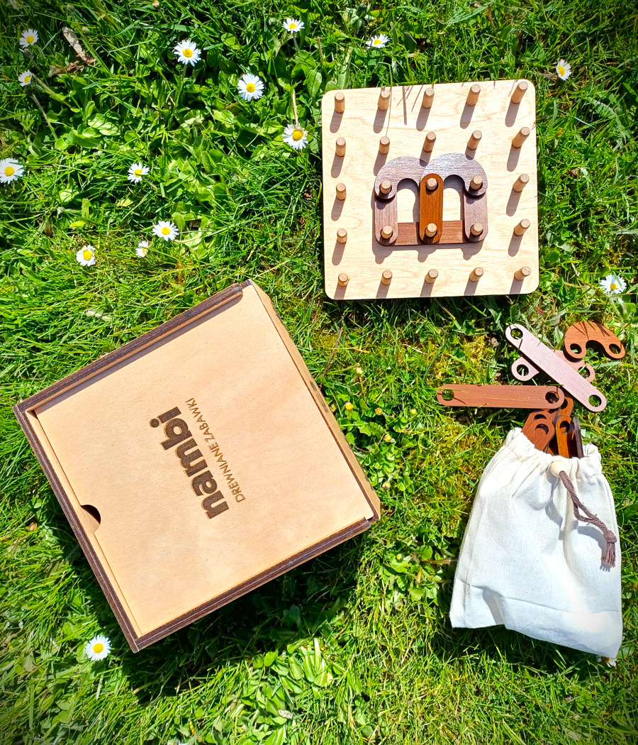 Gra wykonana jest z wysokiej jakości drewna, co czyni ją trwałą i przyjazną dla środowiska. Naturalne kolory oraz ekologiczne opakowanie ograniczają wpływ na środowisko, wspierając harmonię z naturą i minimalizując ilość odpadów. Wszystkie farby użyte do malowania elementów są bezpieczne dla dzieci i ekologiczne.