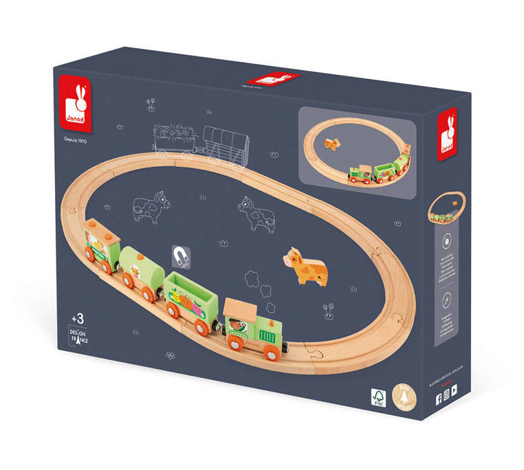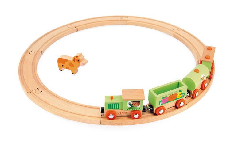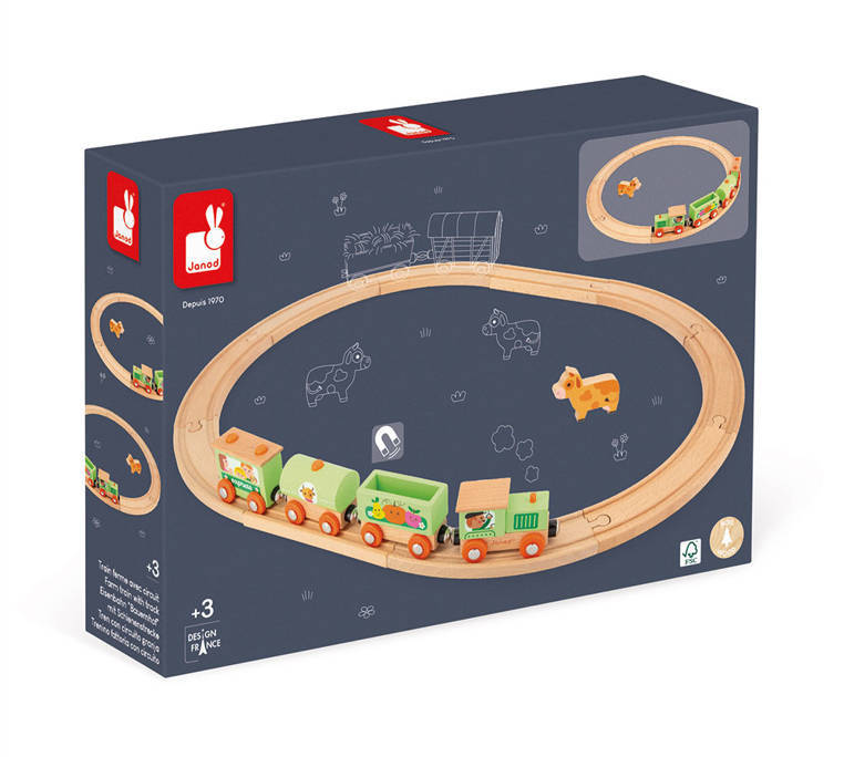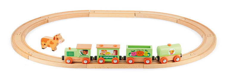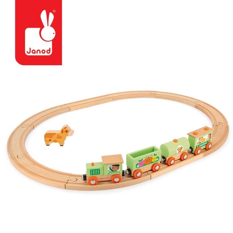 Janod - Pociąg drewniany z torami Farma Story 3+
