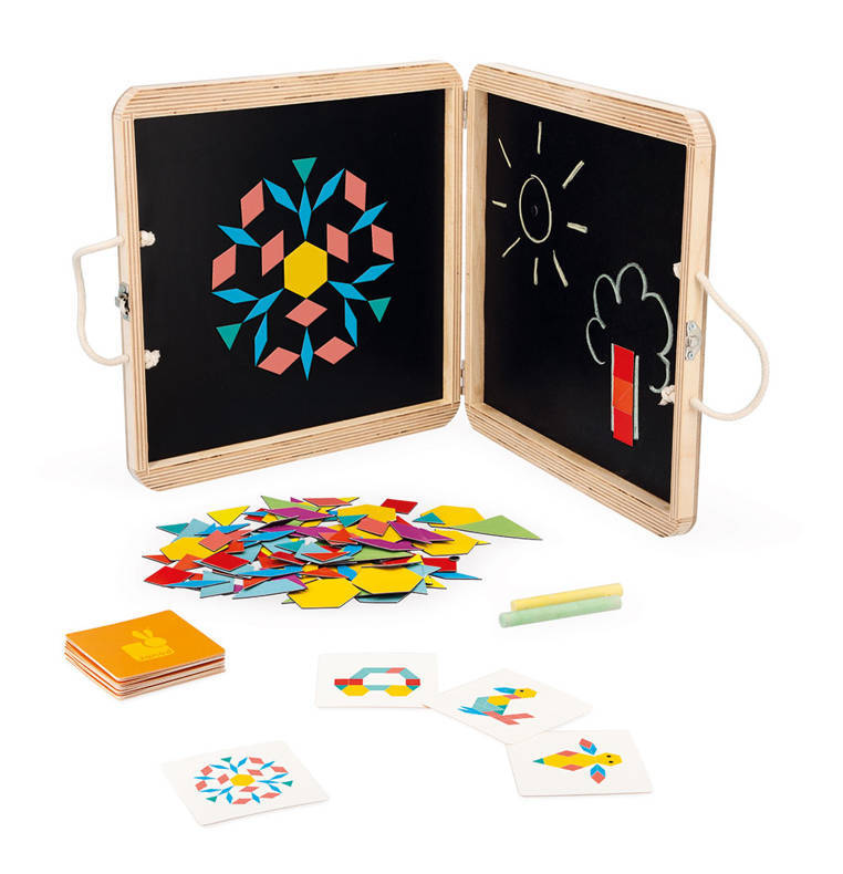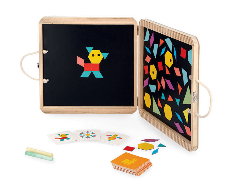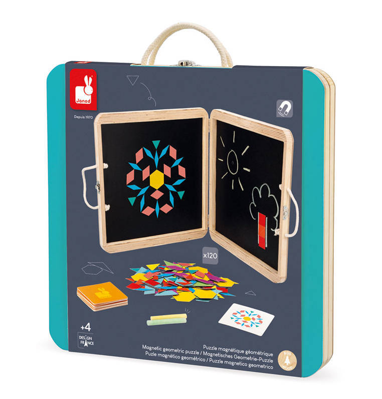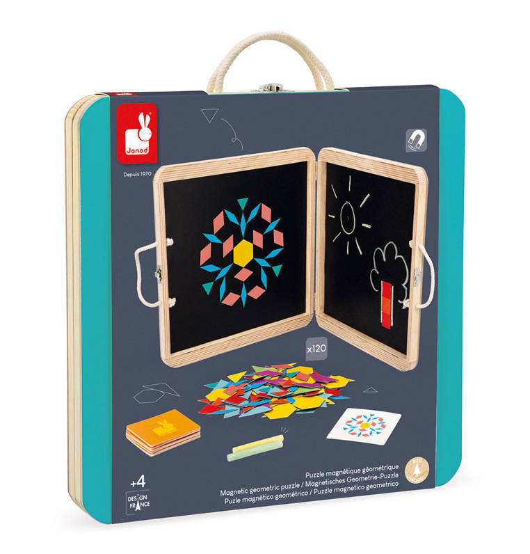 Janod - Układanka magnetyczna w drewnianej walizce Figury geometryczne 3+