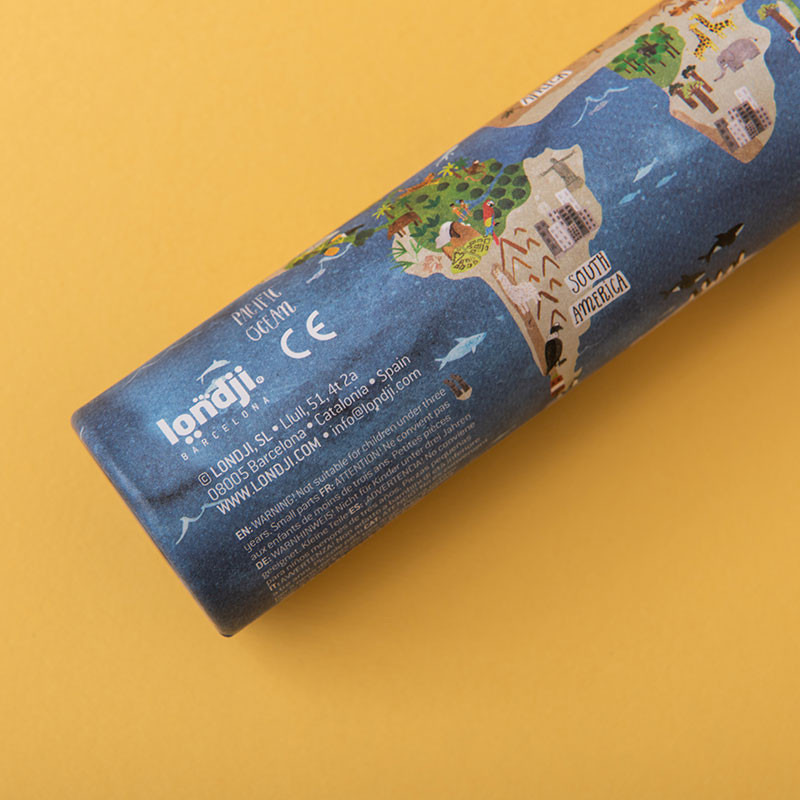 Kalejdoskop mapy świata. Idealny prezent i rozrywka podczas podróży. Wysokiej jakości zabawka optyczna lokalnie wykonana w Barcelonie.