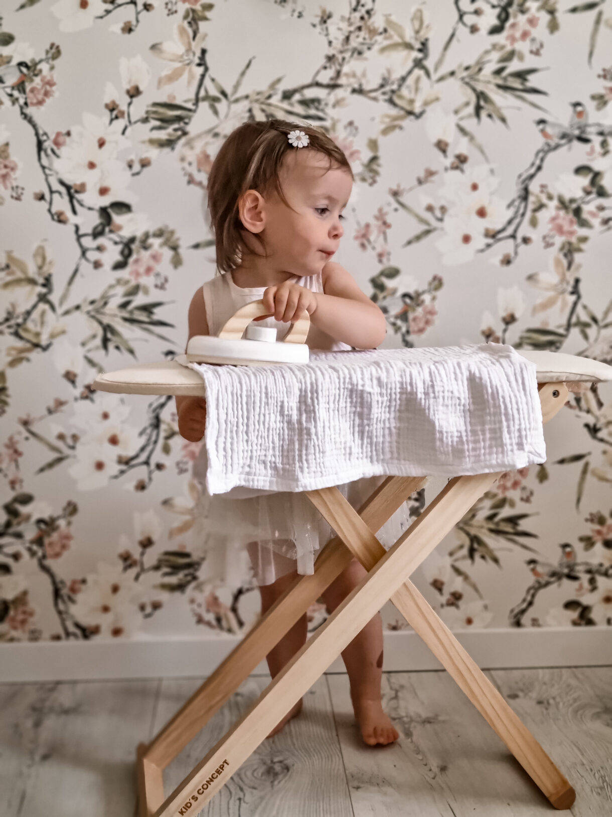 Pokrętło na żelazku wydaje dźwięk kliknięcia. Deska się składa, więc łatwo ją schować, gdy nie jest używana. Dzieci lubią naśladować dorosłych i robić to, co oni, np. prasować. Zestaw zachęca do odgrywania ról, które wspiera całościowy rozwój dziecka i jest świetną zabawą przez długi czas.