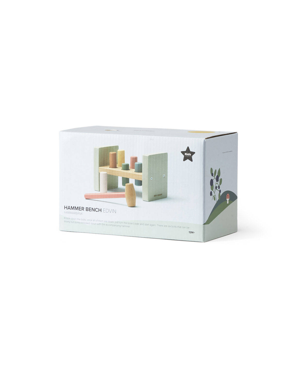 Fajna zabawka, dzięki której maluchy mogą ćwiczyć koncentrację oraz doskonalić koordynację wzrokowo-ruchową. Do ławeczki dołączonych jest sześć drewnianych kołków, w kolorach serii Edvin, które można wbijać młotkiem. A kiedy skończysz, po prostu odwróć ławeczkę i zacznij od nowa. Zabawka wykonana z drewna z certyfikatem FSC.
