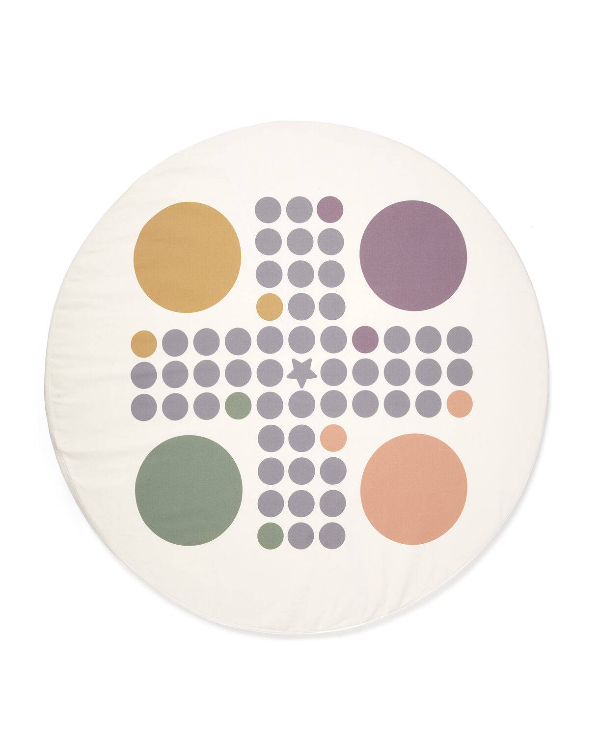 Świetnie się sprawdzi jako mata do zabawy lub plansza do gry w ludo. Jedna strona jest gładka, a druga ma nadrukowaną grę ludo. Materiał, z którego jest wykonana mata, jest podobny do tkanin, z których uszyto nasze bawełniane namioty.Idealnie pasuje do namiotów tipi i pawilonów. Maty możesz też użyć do urządzenia przytulnego kącika w dowolnym pomieszczeniu. Wypełnienie składa się z czterech elementów, dzięki czemu poduszkę można złożyć i przechowywać nawet w niedużym miejscu, gdy nie jest używana. Pokrowiec można zdjąć i uprać. Uwaga: do poduszki nie dołączono elementów gry. Lubimy pobudzać wyobraźnię — wytnij elementy do gry z mocnego papieru lub tektury albo wykorzystaj dowolne figurki Lego, kamyki czy ulubione przedmioty w domu i graj dalej! Nie zapomnij też o swoich ulubionych szczęśliwych kostkach.