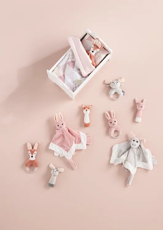 Urocza grzechotka w kształcie królika z kolekcji EDVIN. Grzechotka jest miękka, wygodna i łatwa w obsłudze, odpowiednia dla najmniejszych dzieci.