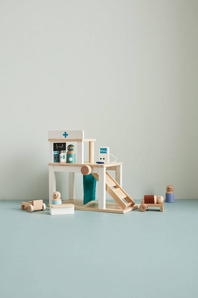 - Materiał Szpital: sosna, sklejka lipowa. Figurki, nosze: schima. Recepcja: sklejka sosnowa, lipowa. Sprzęt medyczny: sosna, bawełna. Zasłona: bawełna.