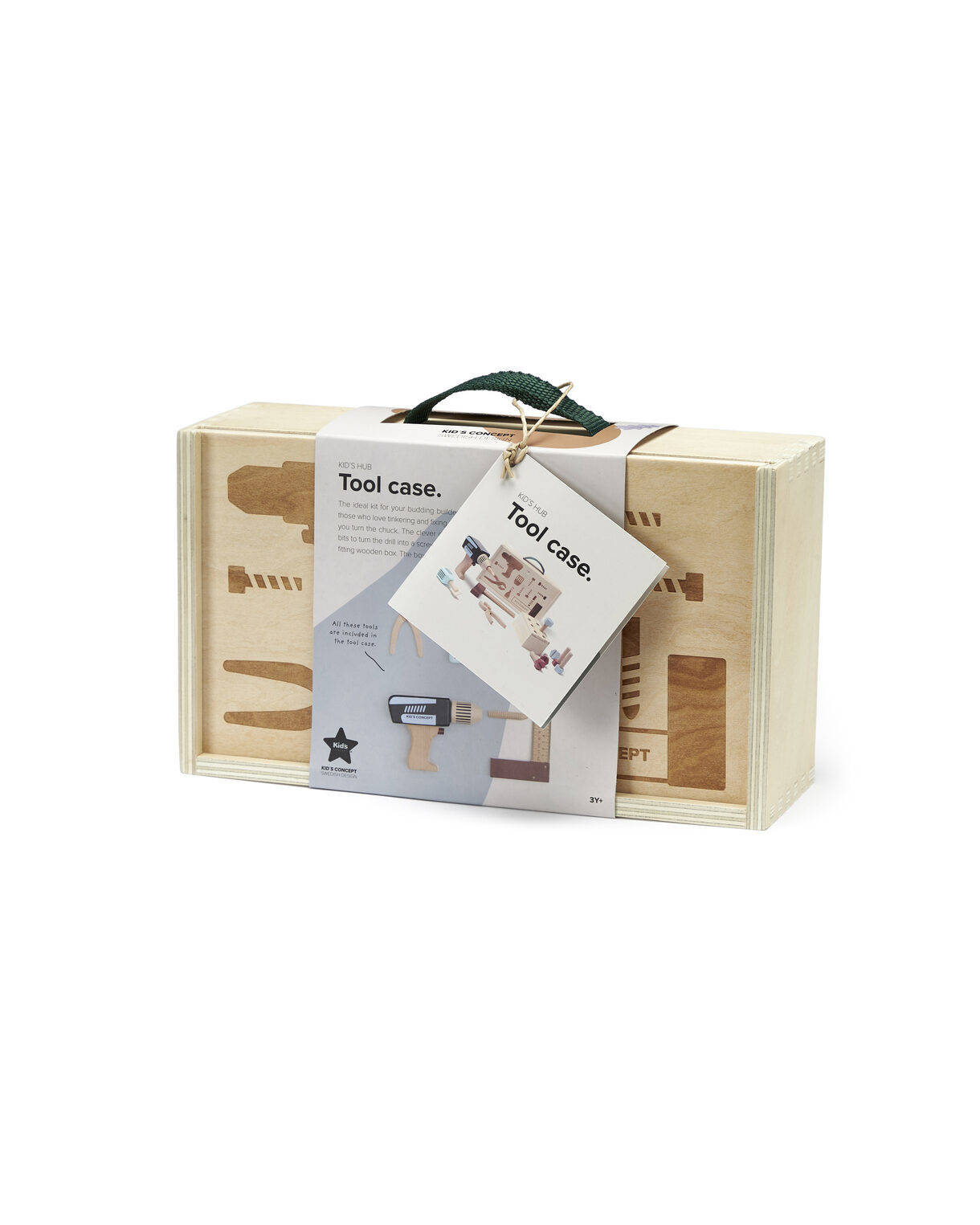 Oto idealny zestaw dla małego majsterkowicza. Skrzynka narzędziowa, wykonana z drewna z certyfikatem FSC, z łączeniami typu jaskółczy ogon, ucieszy dzieci, które uwielbiają przykręcać i naprawiać różne rzeczy.
