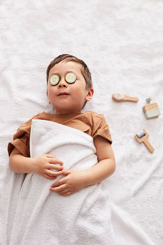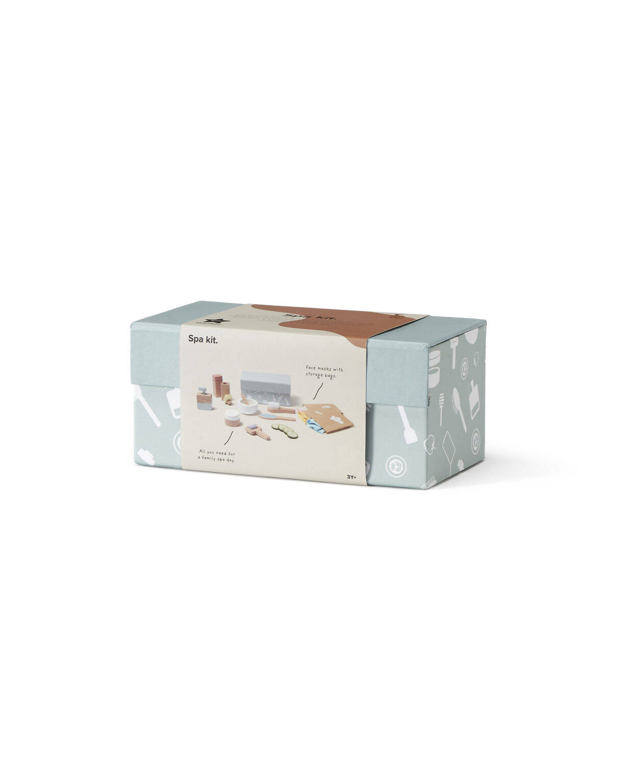 Maseczki, masaż i relaks! Cała rodzina może mieć teraz domowe spa. Tak, czasami zarówno dorośli, jak i dzieci mogą się trochę zrelaksować. Ten luksusowy zestaw spa dla dzieci zawiera wszystko, czego potrzebujesz, by się rozluźnić i uspokoić na chwilę. Drewniana butelka z pompką ma wbudowaną małą sprężynkę, dzięki temu przypomina prawdziwą butelkę z kosmetykiem. Zestaw zawiera również miskę do mieszania i małą łyżeczkę, niezbędne do przygotowania peelingu lub maski do ciała. I co to byłoby za spa bez plasterków ogórka i uroczej maseczki? Maseczki na twarz są wykonane z tego samego materiału co klasyczna maseczka na tkaninie. Masz do wyboru trzy różne rodzaje maseczki – na bazie jagód, miodu i truskawek. Kiedy zabawa dobiegnie końca, bez trudu umieścisz wszystkie akcesoria w naszym pudełku spa z magnetycznym zamknięciem.