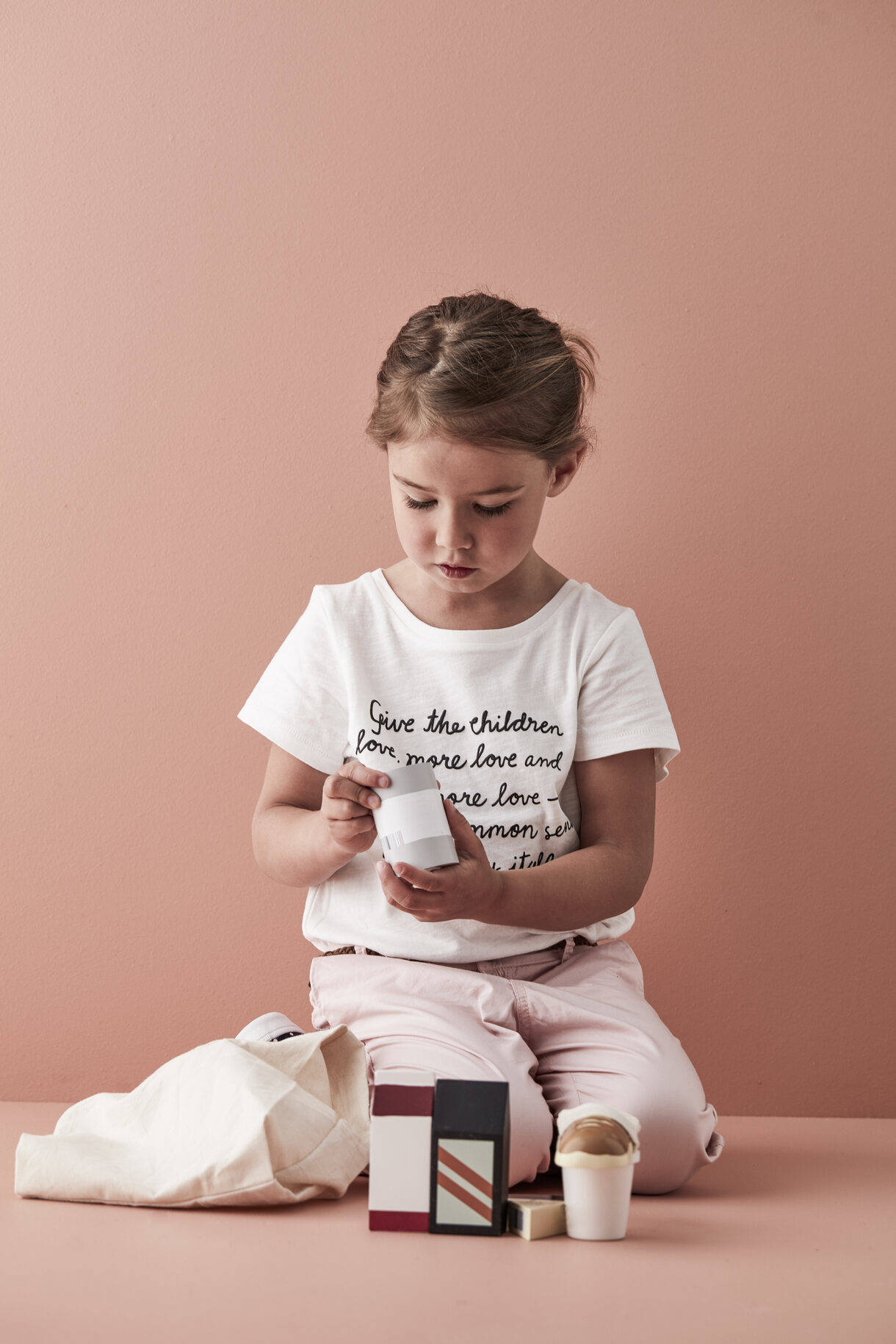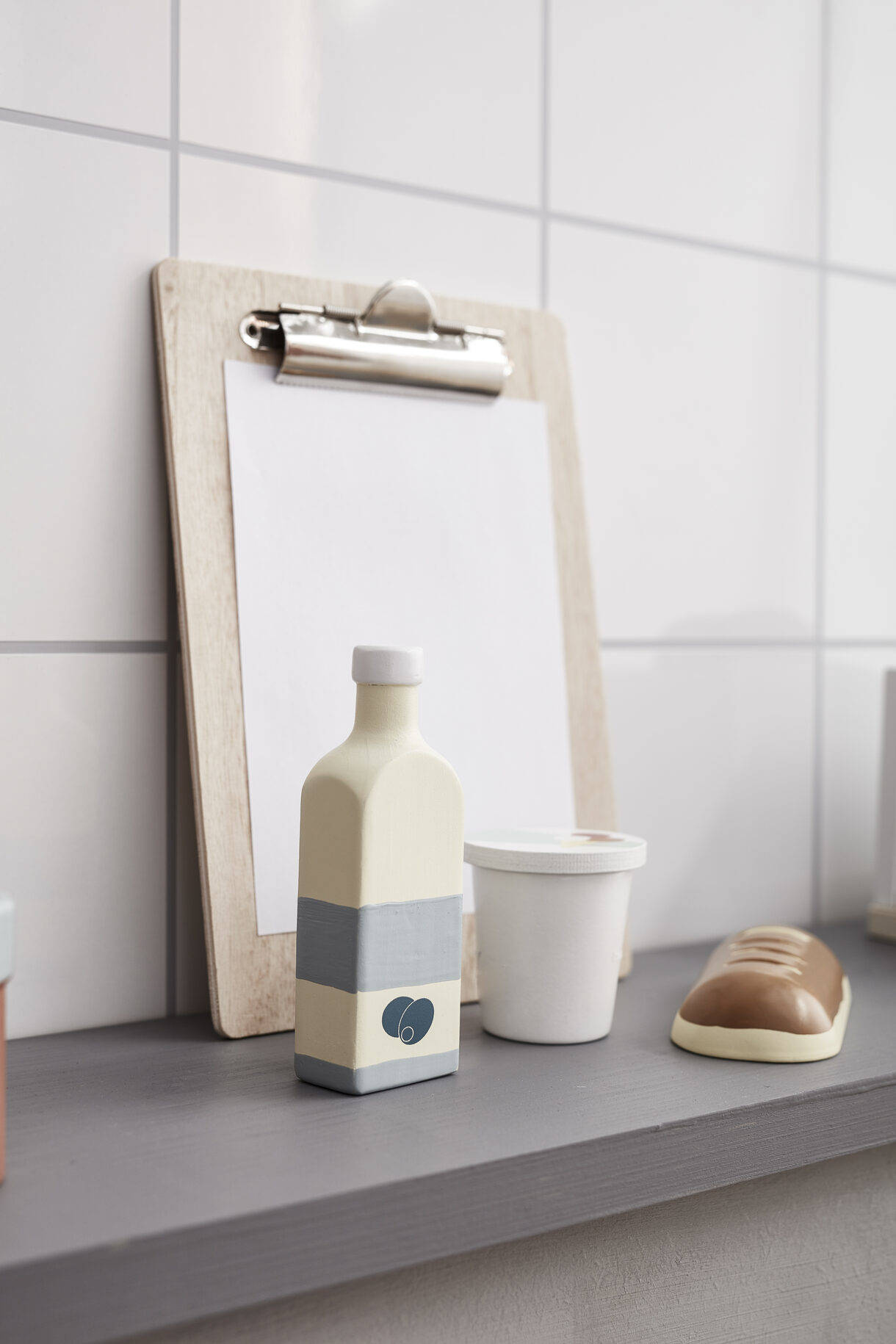 Z tym zestawem zakupów spożywczych możesz robić zakupy. Zabawka bardzo przydatna przy odgrywaniu ról. Zestaw zawiera 7 elementów: kawę, ser, słoik mleka, słoiczek lodów, pomidory w puszce i bochenek chleba w bawełnianej torbie. Ustaw produkty w swoim sklepie, zapłać za jedzenie i zanieś sprawunki do domu w torbie na zakupy.