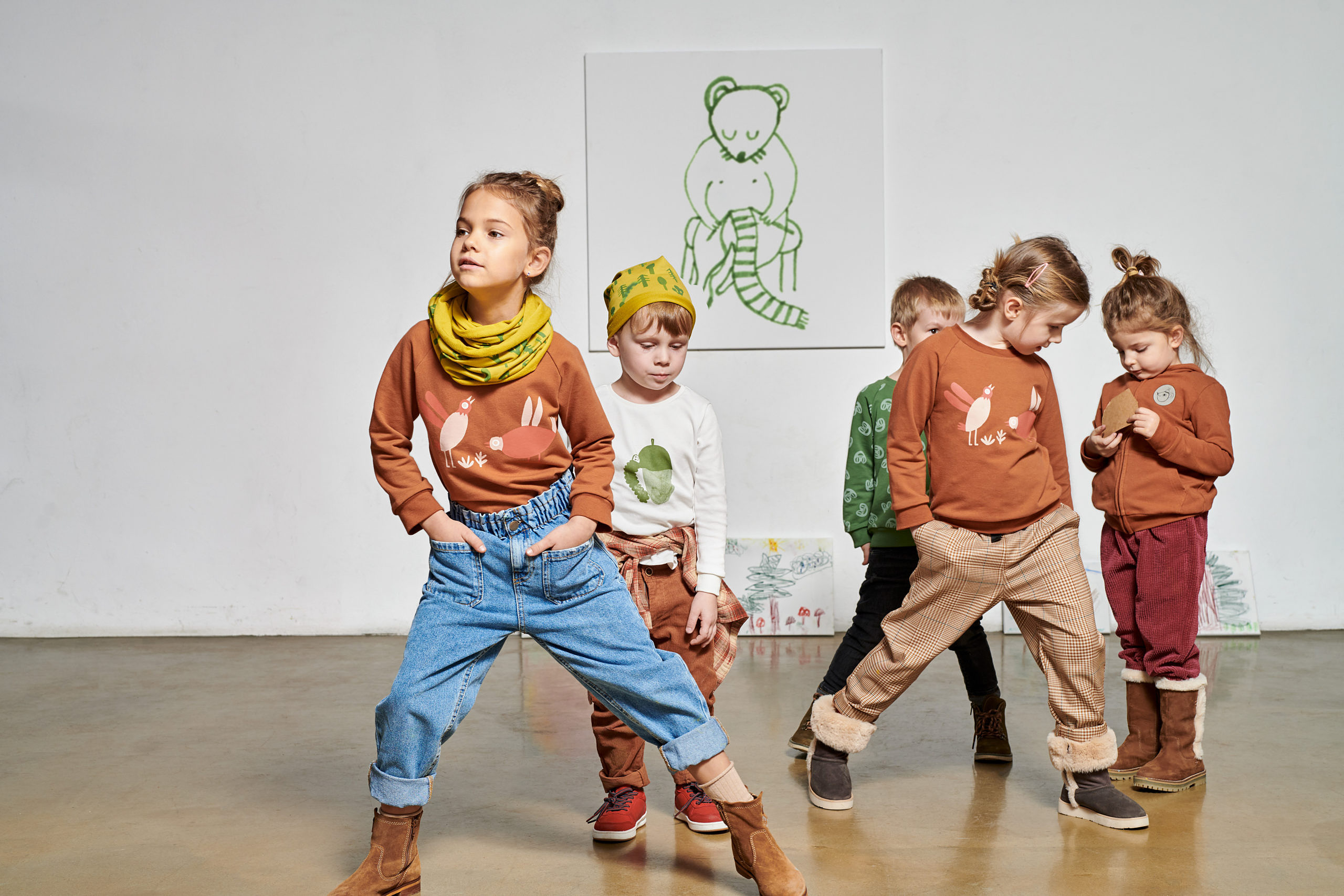 Kolorowe, leśne czapki i kominy uszyte są z certyfikowanej bawełny. Ochronią przed nawet najmocniejszym jesiennym wiatrem!