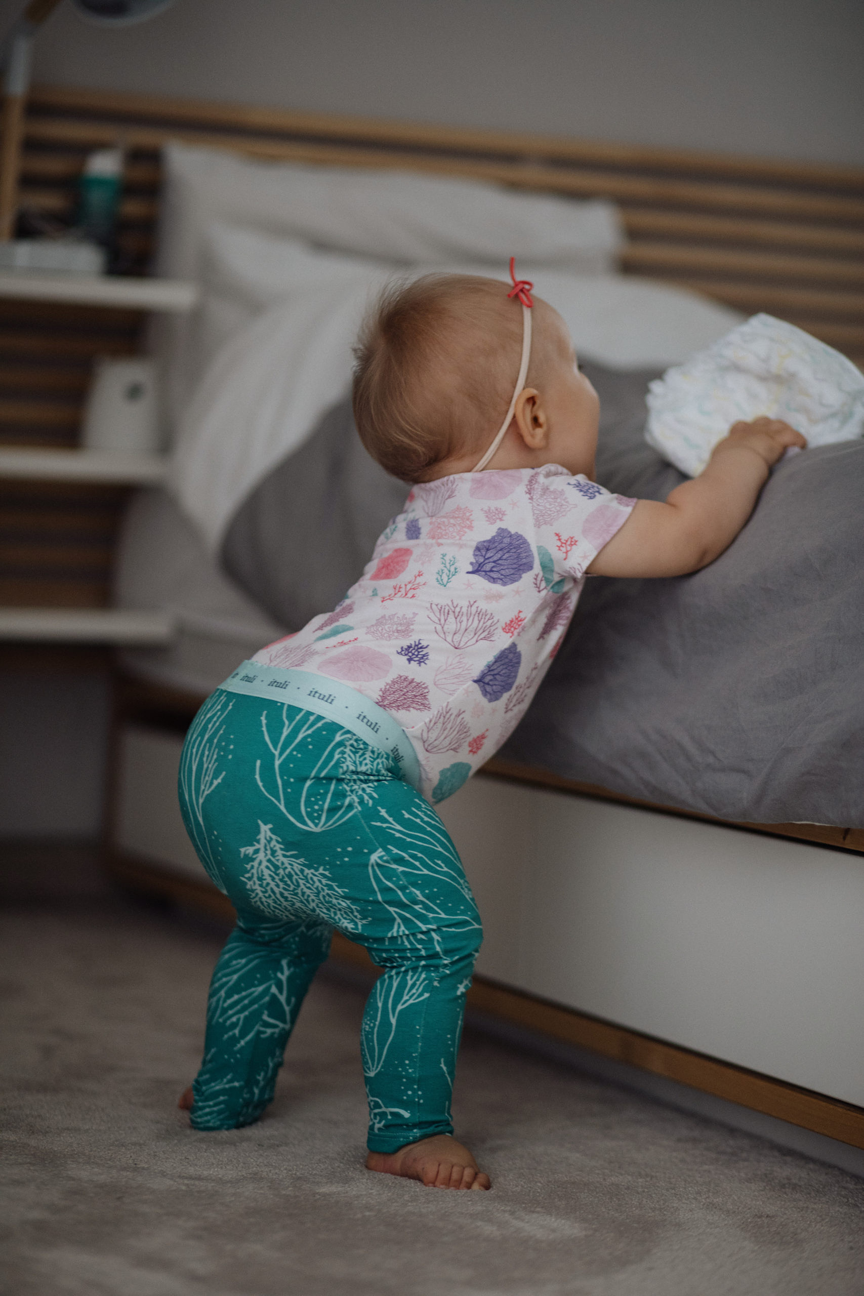 Etycznie wyprodukowano w Polsce przez Ituli Metoda produkcji: krojone ręcznie, szyte na maszynie Pochodzenie materiałów: Polska Użyty materiał: 92% bawełna organiczna, 8% elastan Bawełna organiczna z certyfikatem GOTS Sposób prania i pielęgnacji: