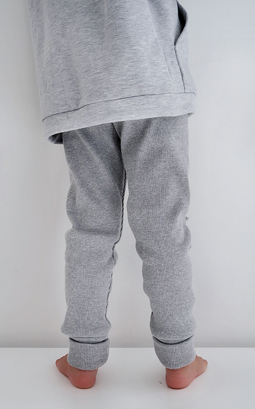 Wygodne legginsy wykonane z bawełnianej, prążkowanej dzianiny. Posiadają szerokie ściągacze na kostkach i w pasie.