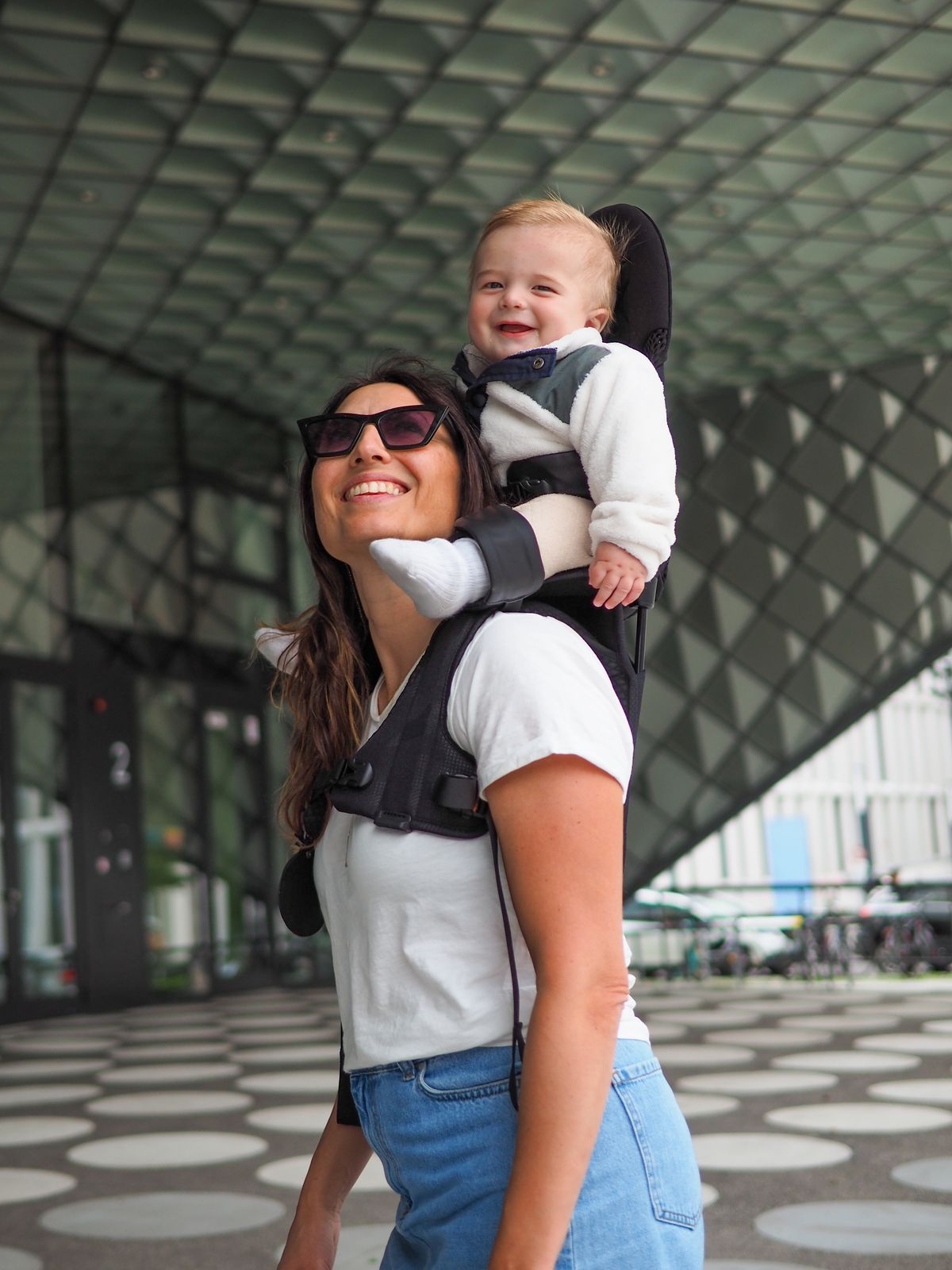 Odkrywając świat w nosidełku MiniMeis, Twoje dziecko siedzi bezpiecznie tuż nad Twoimi ramionami. Jest zabezpieczone pasem biodrowym i paskami trzymającymi nóżki. W zestawie są także szelki z paskami naramiennymi, które zapewniają najmniejszym dzieciom (6-10 miesięcy) dodatkowe wsparcie górnej części ciała. Regulowane i miękko wyściełane siedzisko gwarantuje maksymalny komfort. Oparcie zostało zaprojektowane tak, aby pomagało dziecku trzymać się prosto podczas siedzenia w nosidełku.