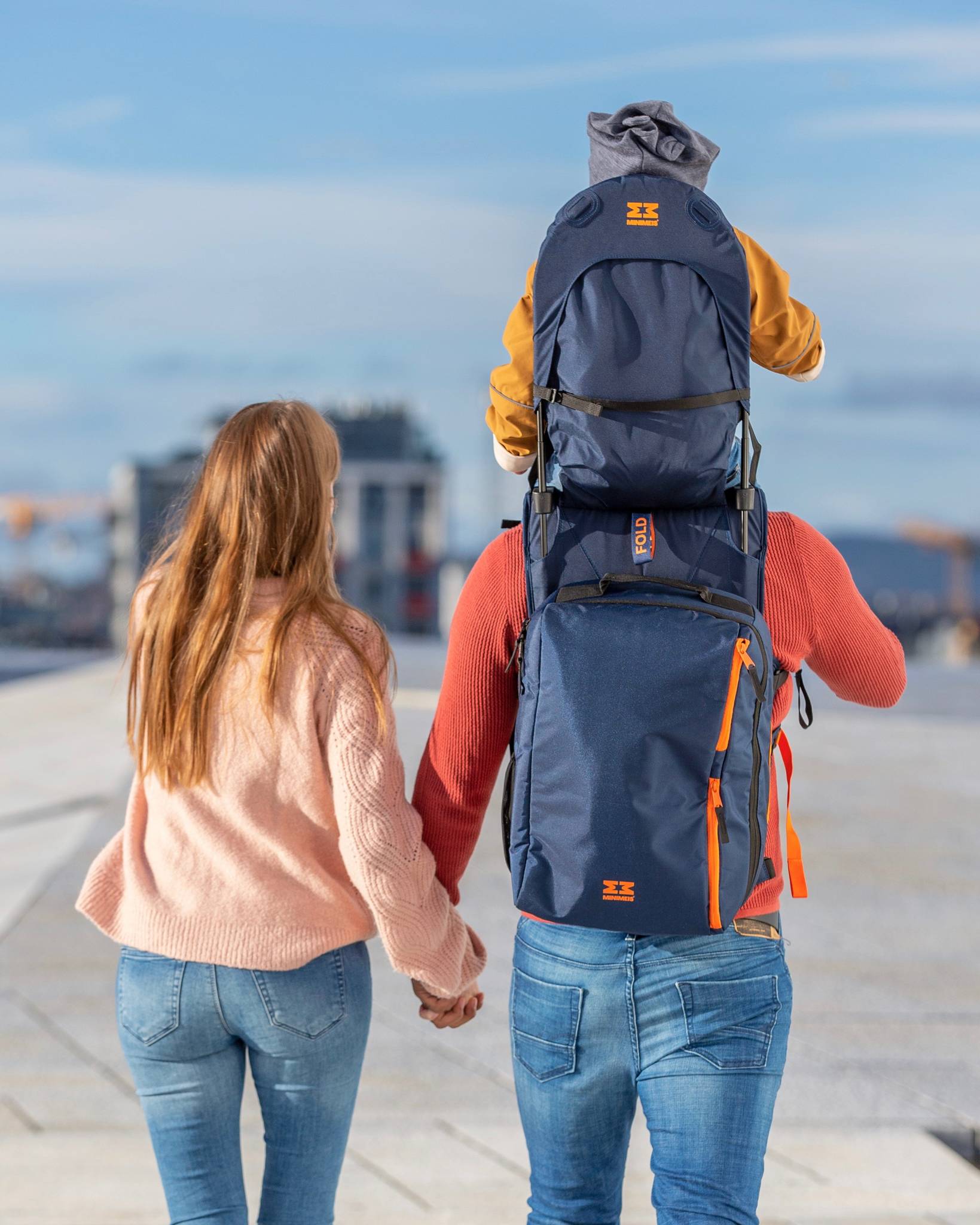 - Plecak o pojemności 28 litrów do transportu złożonego nosidełka MiniMeis + rzeczy niezbędnych w podróży