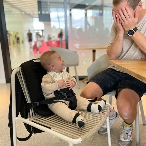 Otwórz tylną klapę plecaka, wywiń na zewnątrz siodełko, zapnij boczne paski, aby ławka w parku, krzesło przy kawiarnianym stoliku i inne miejsca zamienić w wygodne siedzisko dla dziecka.
