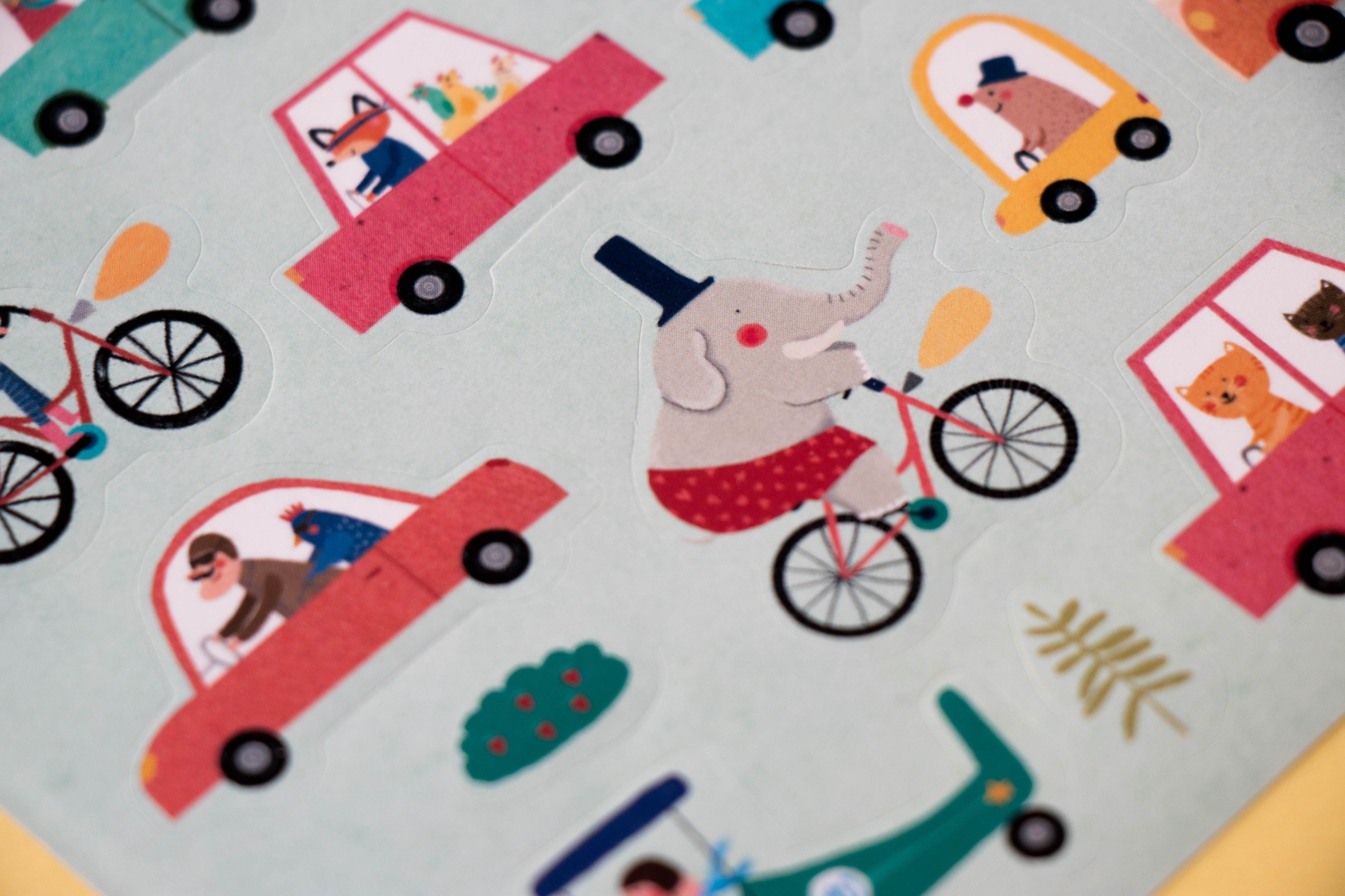 150 zdejmowanych naklejek i 2 tła, aby tworzyć nieskończone sceny. Zabawa zachęca dzieci do kreatywności. Niewielkie, poręczne opakowanie sprawia, że można je zabrać wszędzie ze sobą.