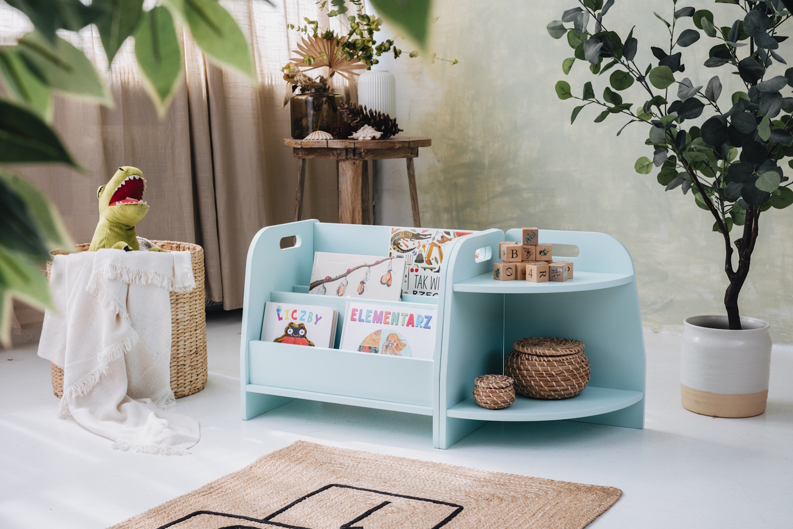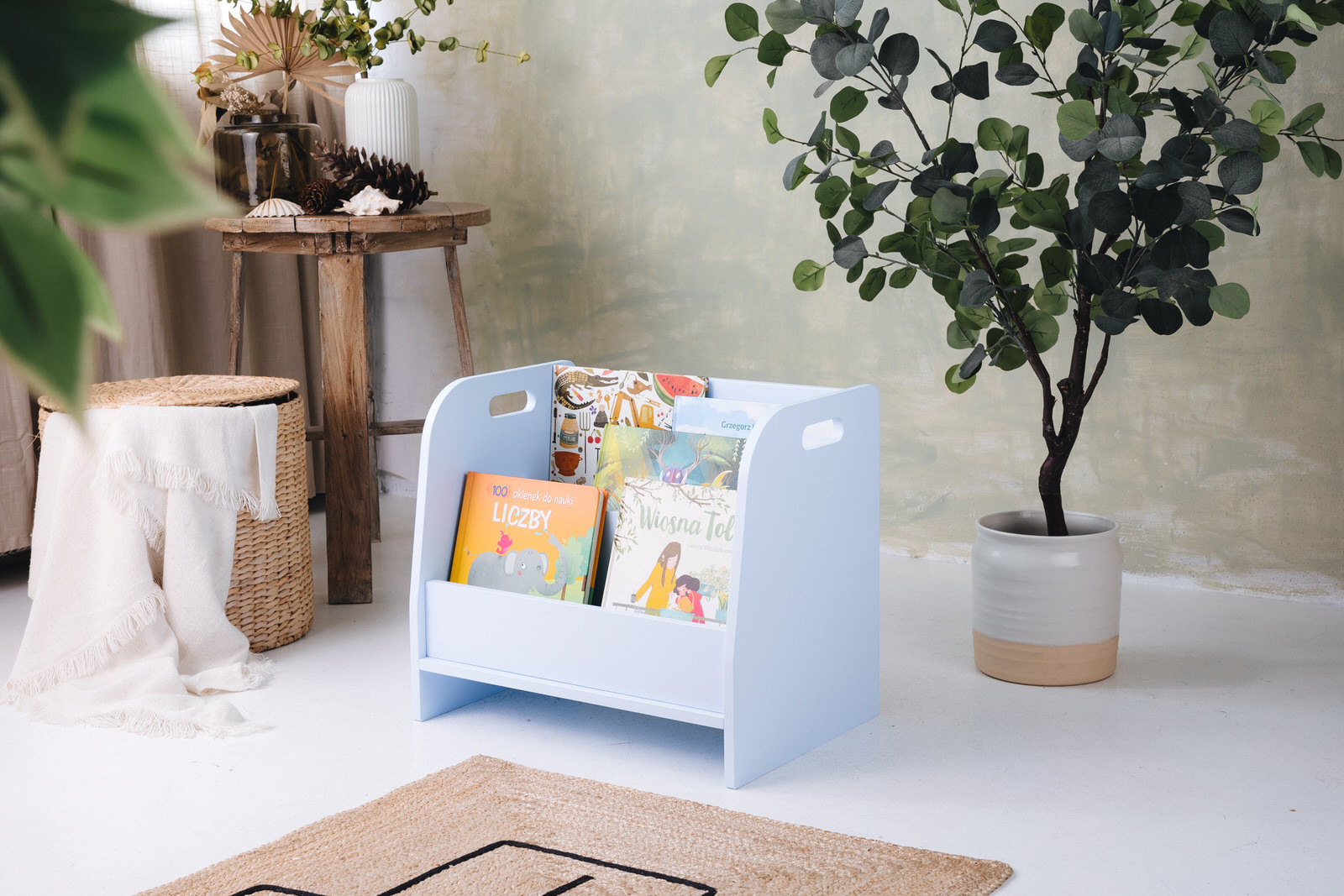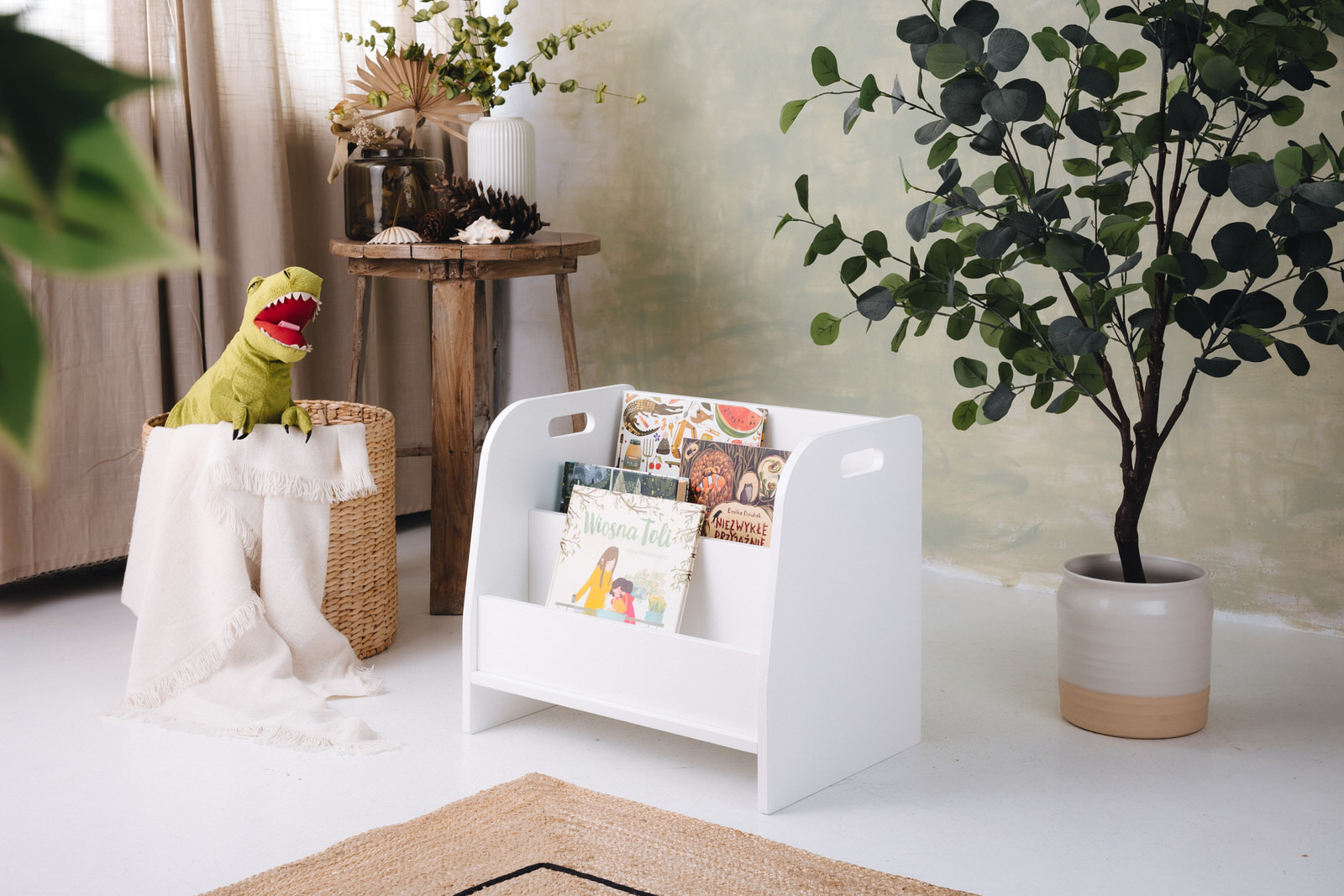 Biblioteczka dla dzieci w formie otwartego i przejrzystego w swojej konstrukcji regału na książki jest idealną propozycją dla miłośników harmonii oraz prostoty wnętrz. Zgodnie z zasadami metody Montessori, mebel ten ma za zadanie wsparcie dziecka w jego rozwoju. Już sam sposób układania książek okładką do przodu umożliwia małemu człowiekowi dokonanie przemyślanego wyboru lektury, a pełna dostępność do półek-kieszeni z poziomu podłogi ułatwia nie tylko dotarcie do upatrzonej pozycji, ale również zachęca do umieszczenia jej później z powrotem na swoim miejscu. Takie rozwiązanie uczy samodyscypliny i dbałości o własną przestrzeń.