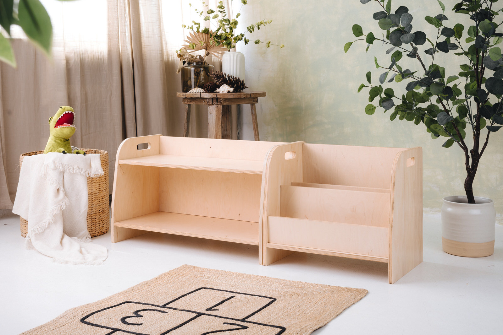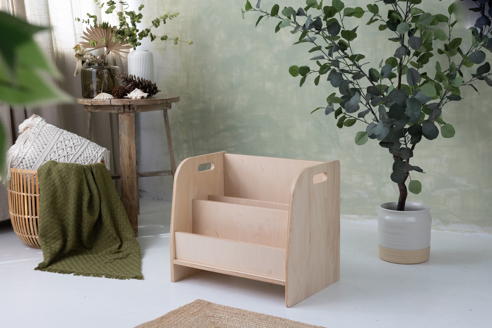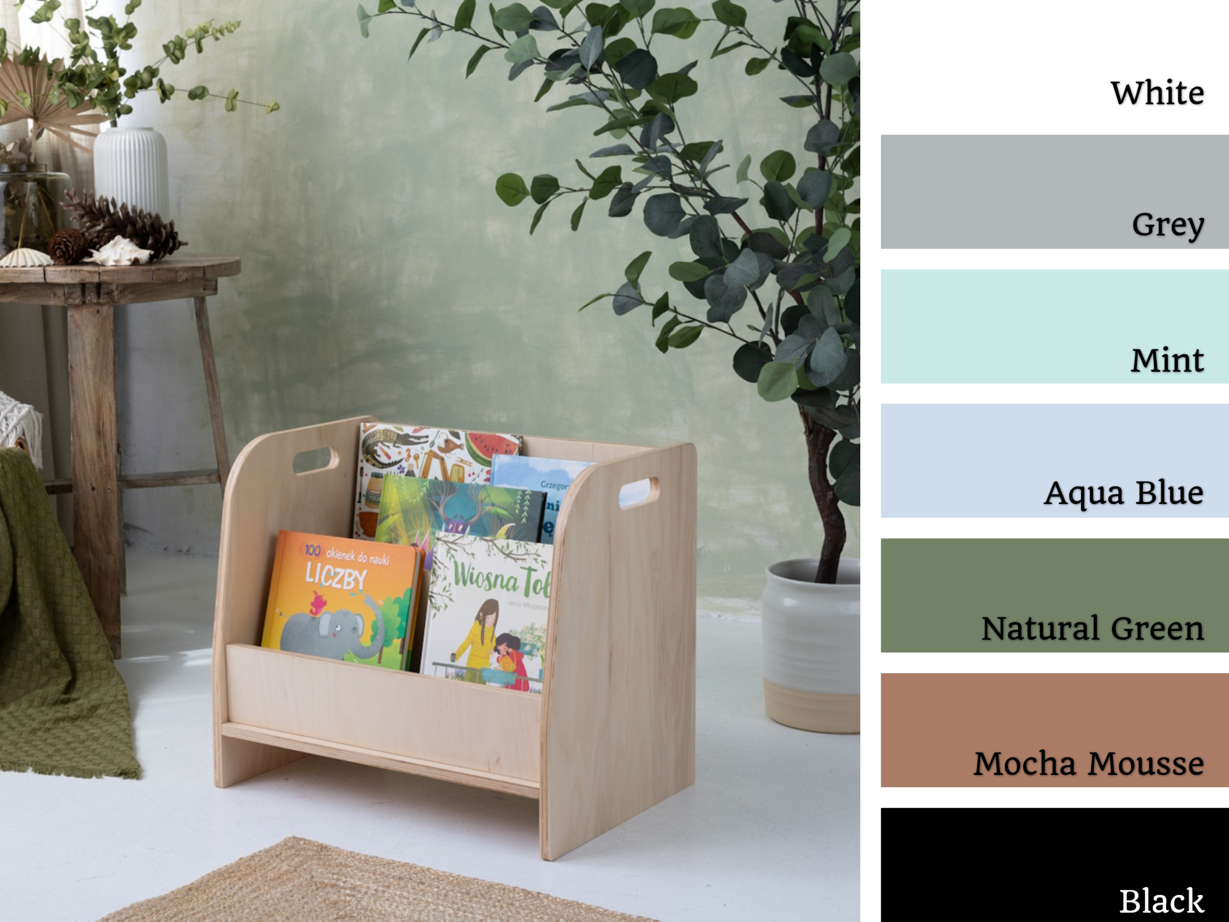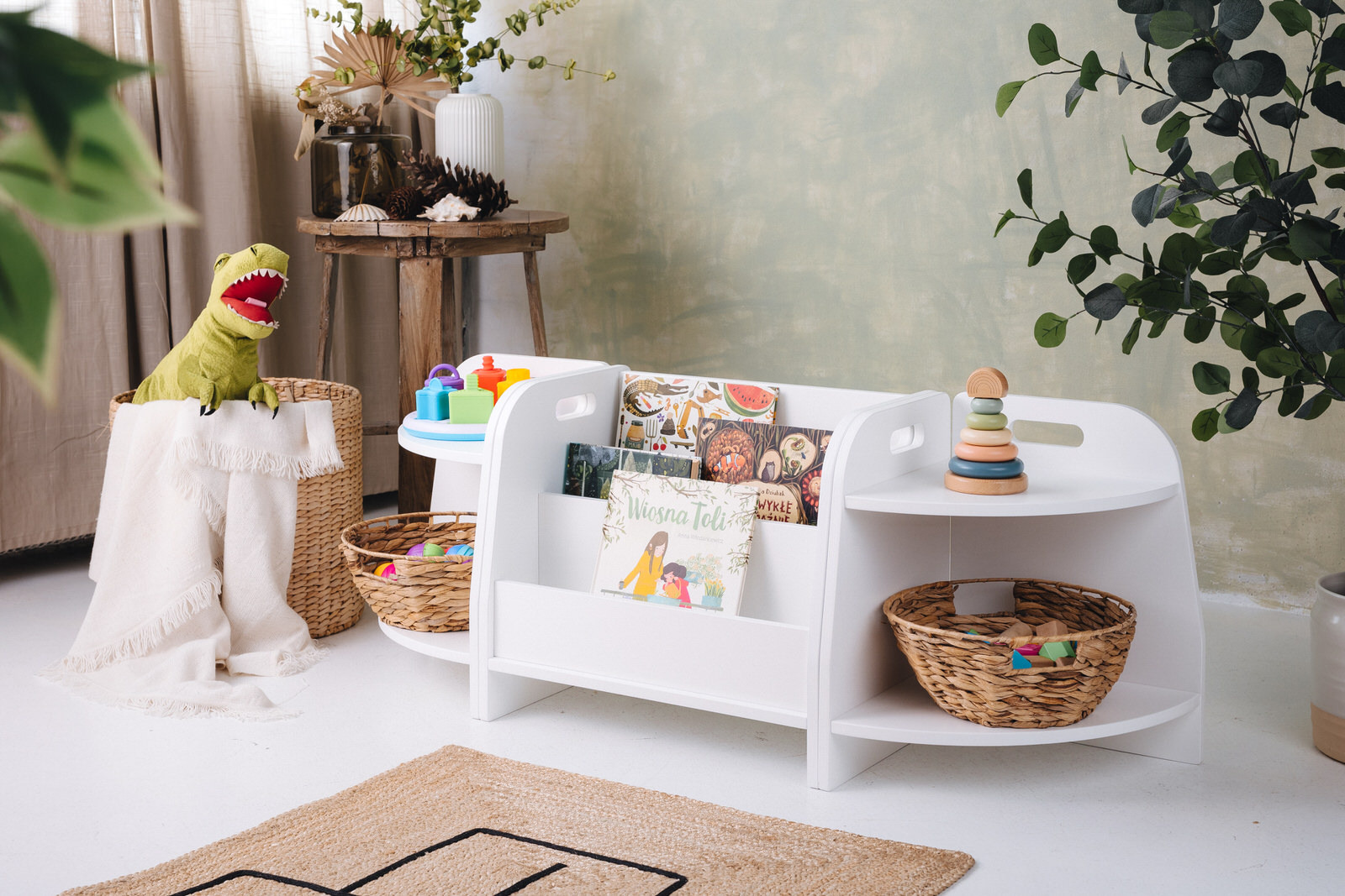 Biblioteczka dla dzieci w formie otwartego i przejrzystego w swojej konstrukcji regału na książki jest idealną propozycją dla miłośników harmonii oraz prostoty wnętrz. Zgodnie z zasadami metody Montessori, mebel ten ma za zadanie wsparcie dziecka w jego rozwoju. Już sam sposób układania książek okładką do przodu umożliwia małemu człowiekowi dokonanie przemyślanego wyboru lektury, a pełna dostępność do półek-kieszeni z poziomu podłogi ułatwia nie tylko dotarcie do upatrzonej pozycji, ale również zachęca do umieszczenia jej później z powrotem na swoim miejscu. Takie rozwiązanie uczy samodyscypliny i dbałości o własną przestrzeń.