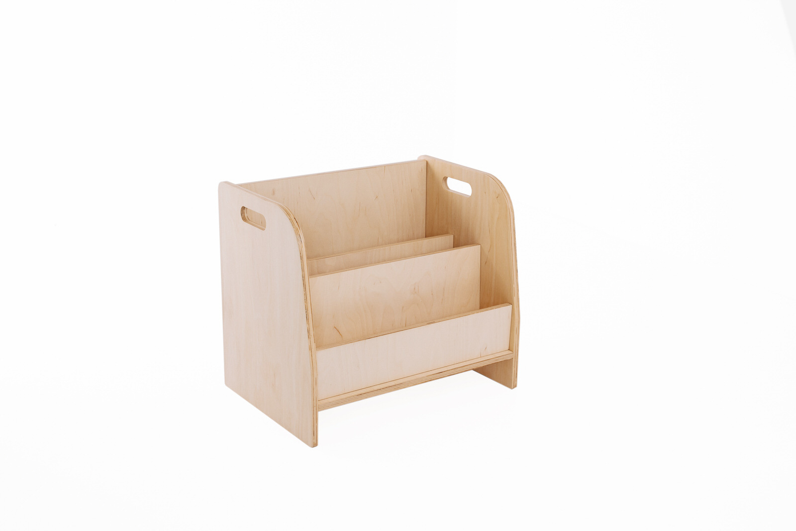 Biblioteczka dla dzieci została wykonana ręcznie ze sklejki o grubości 15mm wyprodukowanej z drewna liściastego. Pomalowano ją całkowicie bezpiecznymi dla środowiska i zdrowia dziecka lakierami i farbami spełniającymi m.in. warunki europejskiej normy PN EN 71.3.