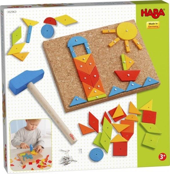 Przybijanka Kolory HABA pozwoli Twojemu dziecku na rozwijanie sprawności manualnej oraz pomoże w poznawaniu kształtów i kolorów. Ten rodzaj gry wzmacnia też jego wyobraźnię. Podczas zabawy dzieci budują i wzmacniają swoją wyobraźnię. Z wielu kolorowych figur geometrycznych w mgnieniu oka powstaną domki lub drzewka, auta lub zwierzęta. Przy okazji granie w grę dzieci doskonalą również motorykę małą i koncentrację. Zawartość opakowania: 50 drewnianych tabliczek (grubość 3 mm).