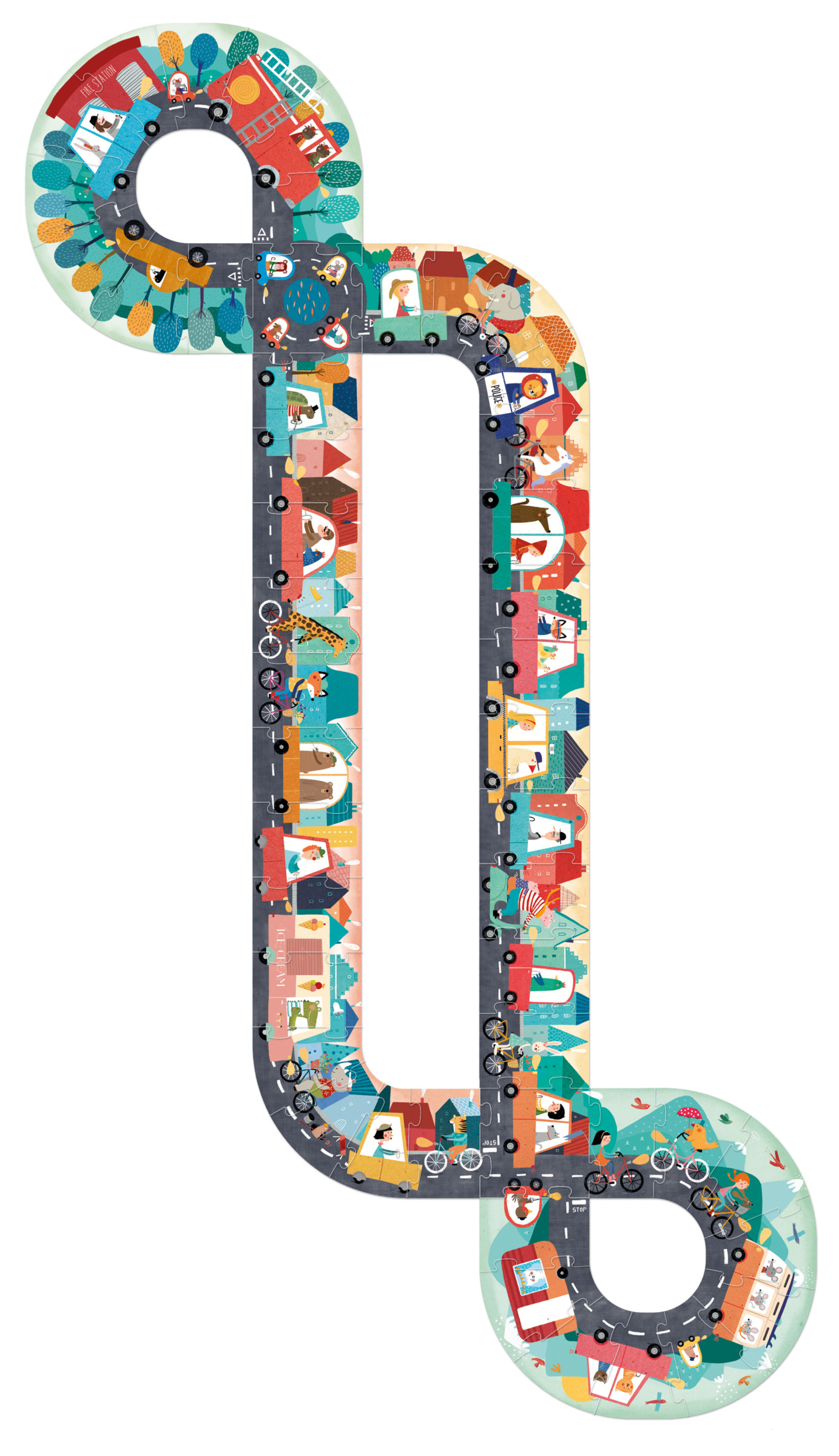 Puzzle po ułożeniu tworzą drogę, po której można jeździć samochodami bez końca.