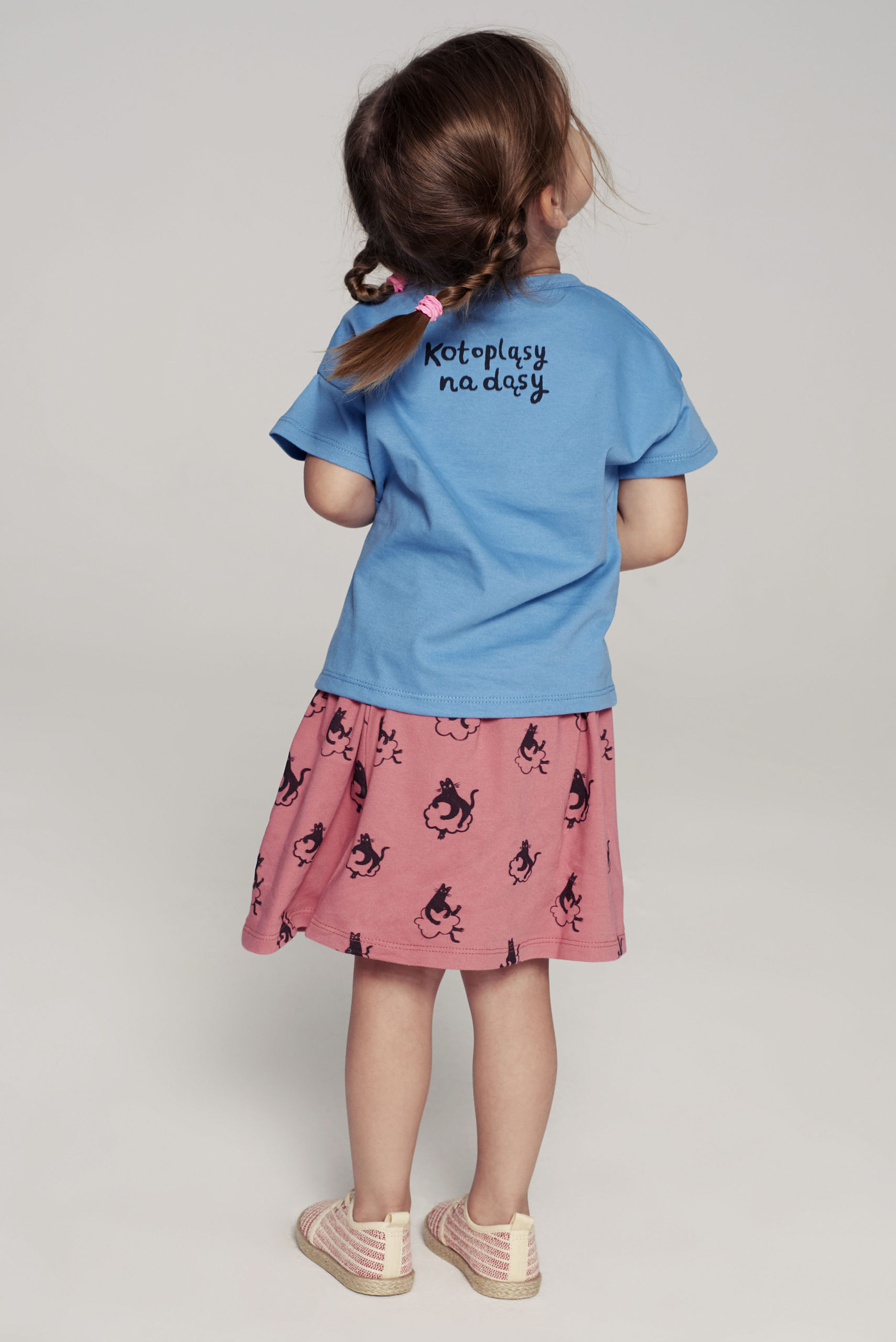 Różowa spódniczka w kotki przypadnie do gustu każdej miłośniczce zwierząt.
