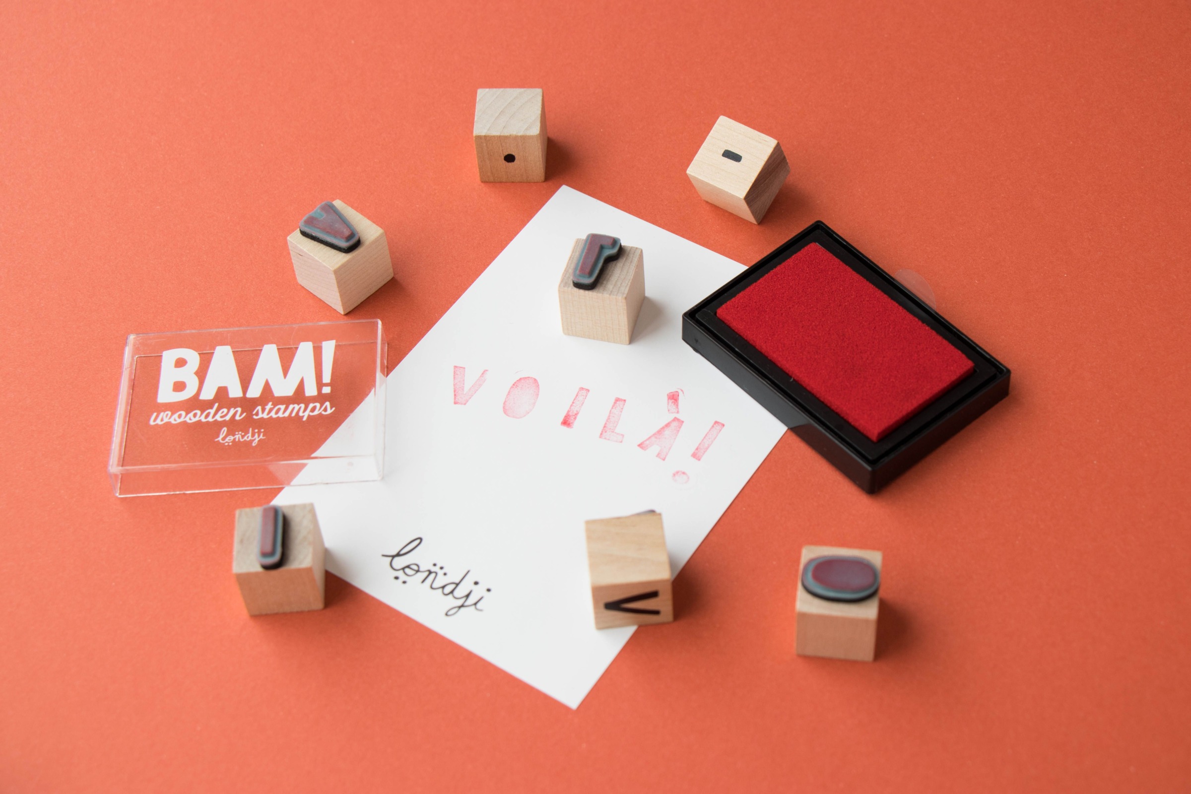Twórz różne słowa, zdania, napisy za pomocą drewnianych stempelków! Ile dziecięca wyobraźnia podpowie!