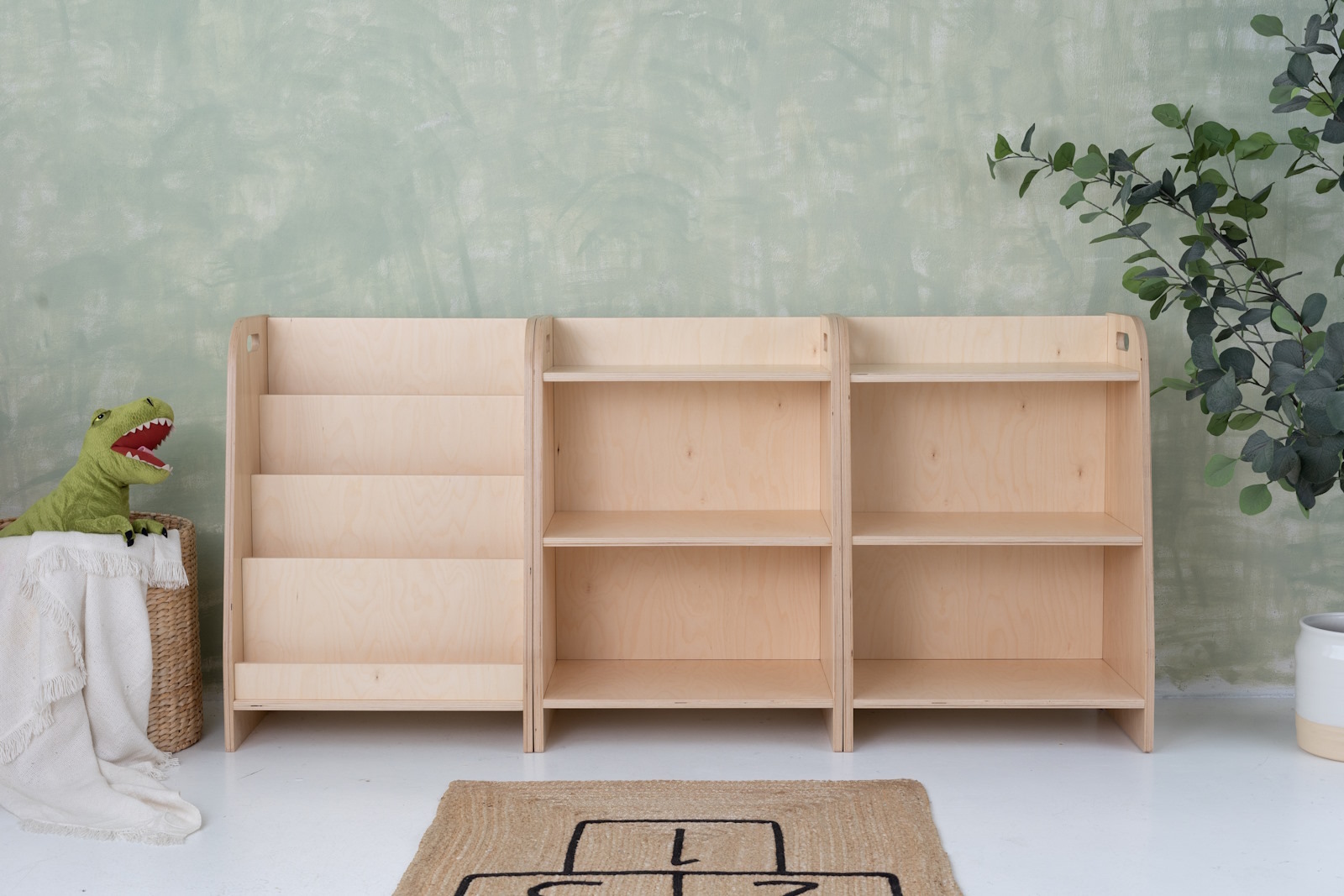 Regał na zabawki i biblioteczka zostały wykonane ręcznie ze sklejki o grubości 15mm wyprodukowanej z drewna liściastego. Pomalowano je całkowicie bezpiecznymi dla środowiska i zdrowia dziecka lakierami i farbami spełniającymi m.in. warunki europejskiej normy PN EN 71.3.