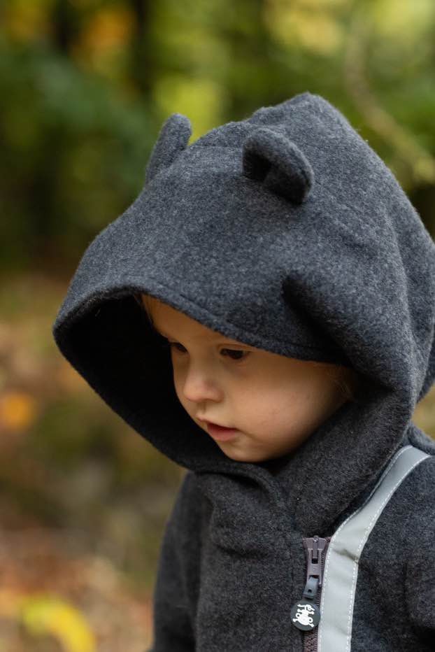 Kurteczka dziecięca 100 % wełna Merino z dopinanym Patentem, Szary Miś