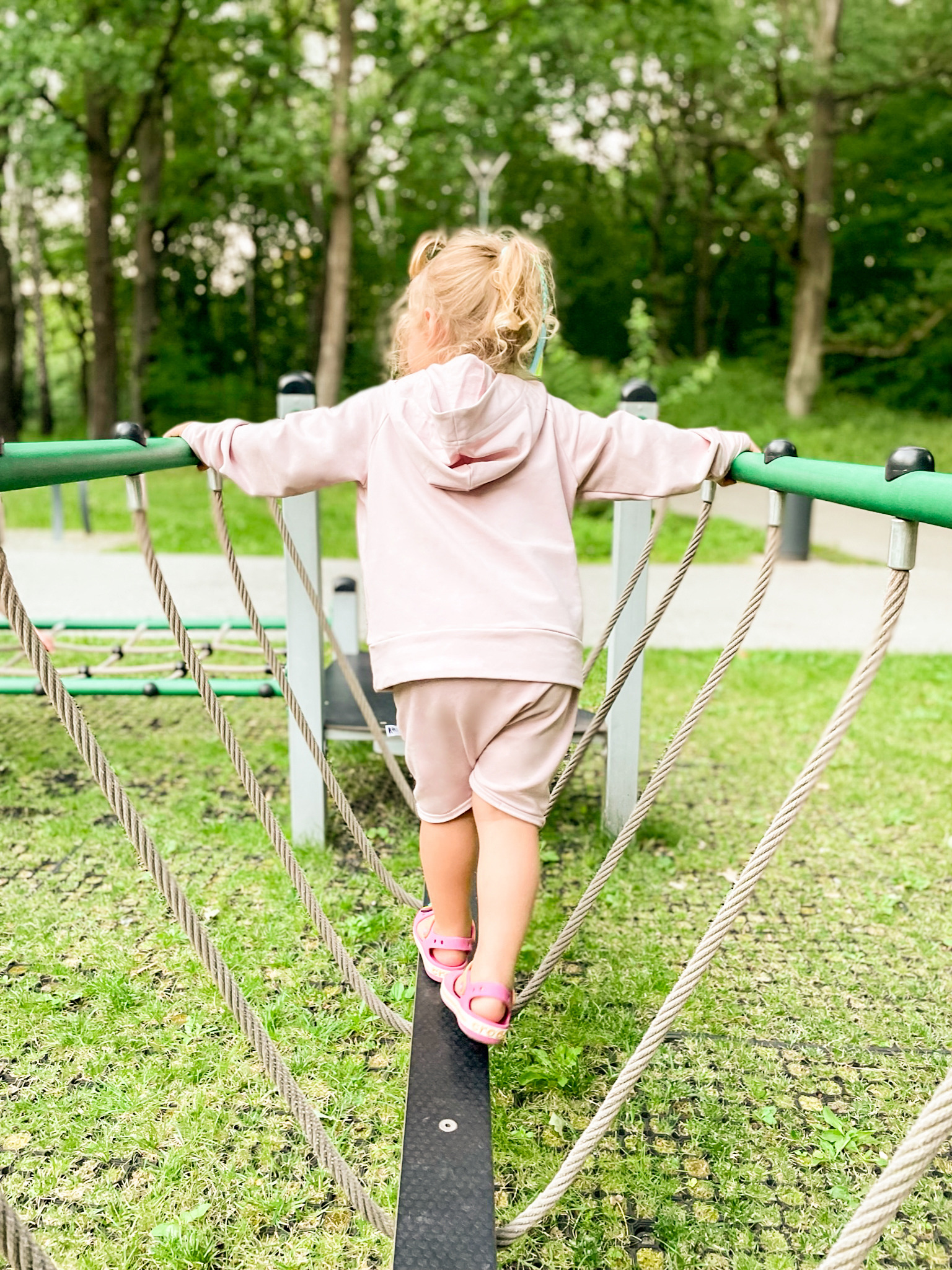 Bluza różowa z kapturem i kangurkiem w paski